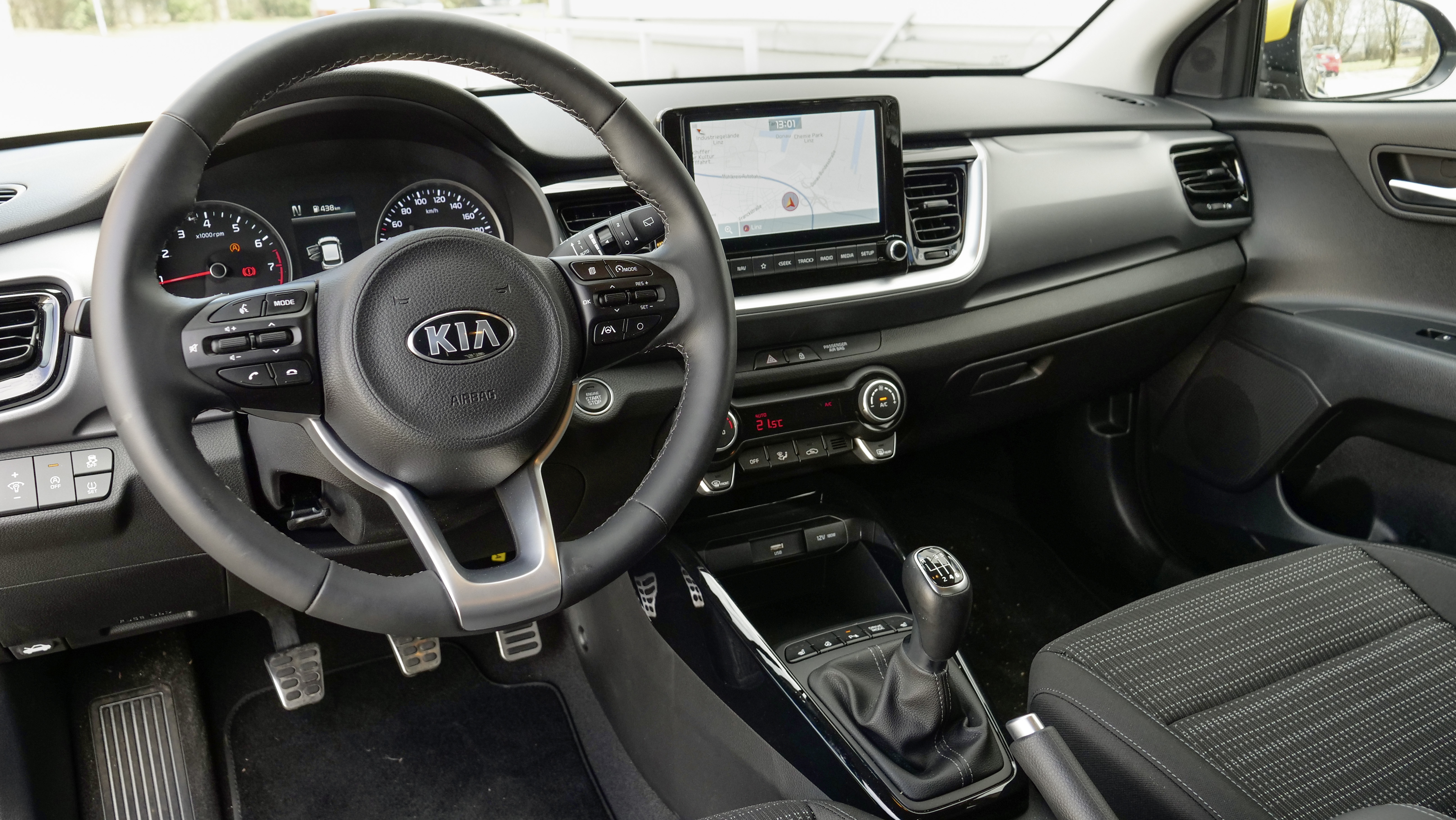 Sich über ein Spritsparsystem zu unterhalten, das sich 48-Volt-Mildhybrid mit IMT6-Schaltgetriebe nennt, klingt vielleicht nicht so prickelnd. Aber im Fall des Stonic ist das durchaus interessant, denn das kleine SUV mit Crossover-Genen kann trotz manuellem Schaltgetriebe segeln lassen. Das Segeln ist leicht erklärt: Um Sprit zu sparen, wird, sobald man den Fuß vom Gas nimmt, der Motor abgeschaltet und dieser vom Getriebe getrennt. Dann gleitet man ohne Treibstoffverbrauch leise dahin. Dazu war bisher ein Automatikgetriebe notwendig. Im Stonic ist nun ein intelligentes manuelles Schaltgetriebe verbaut, das bei eingelegtem Gang unmerklich das Segeln möglich macht. Erst beim Blick auf den Verbrauch merkt dies der Fahrer. Das ganze Mildhybridsystem macht im Stonic tatsächlich Sinn. Im Test haben wir den Stonic mit 5,5 bis 6 Litern bewegt. Das ist bei kleinen Dreizylindern eher eine Ausnahme, denn die Dinger neigen tatsächlich vor allem auf Autobahnen zu Trinkgenuss. Immerhin muss ein Dreizylinder mit höheren Drehzahlen betrieben werden. Wir haben auf Autobahnen zwischen 6,2 und 6,5 Liter verbraucht. Der Motor selbst, ein 1,0-Turbobenziner mit 120 PS ist sicher keine Rakete. 10,2 Sekunden auf 100 Sachen sind keine Sensation, aber es reicht für den täglichen Überholvorgang – der typische knurrige Dreizylindersound ist auch mit an Bord. Noch ein Detail am Rande: Gestartet wird der Stonic mit dem IMT-Getriebe ohne eingelegtem Gang, was ein bisschen nervt, aber woran man sich gewöhnt.