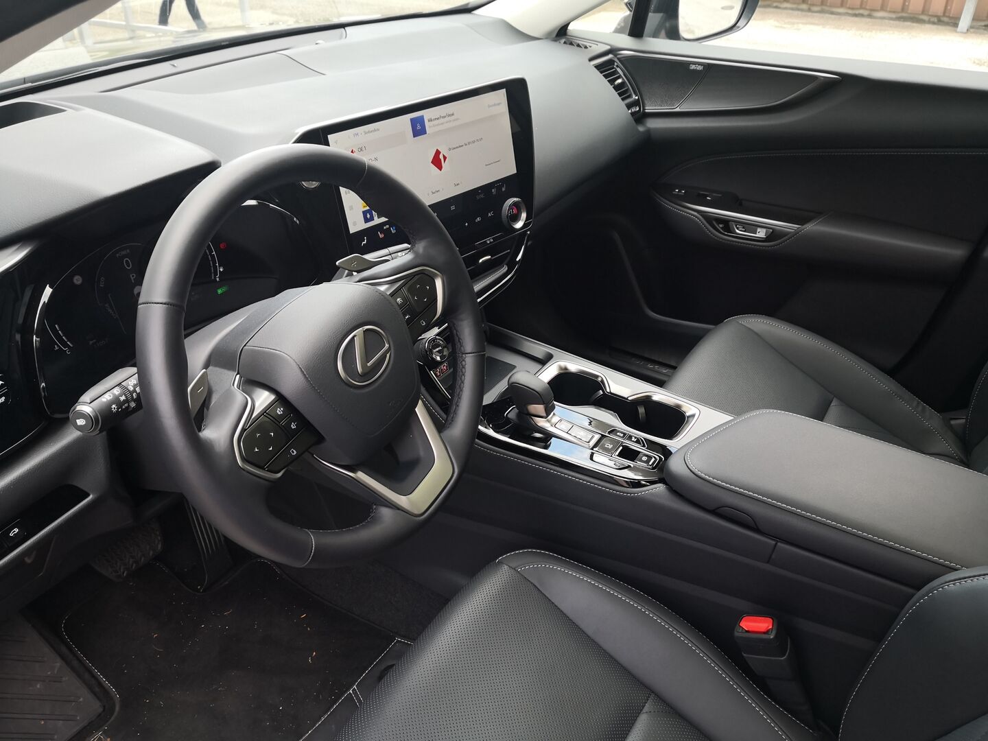 Jetzt bin ich schon fast 20 Jahre Motorjournalist und dann das! Ich will aus dem Lexus NX aussteigen suche den Türgriff und finde keinen. Glücklicherweise war der Test-Lexus derart neu, dass am elektronischen Türgriff noch ein Auslieferungs-Pickerl klebte. Da stand: „PUSH-OPEN“. Also mache ich „Push“ und finde tatsächlich den Weg aus dem Lexus. Wenn man das einmal überrissen hat, macht so ein elektronischer Türöffner durchaus Sinn. Vor allem deshalb, weil dieser mit einem Assistenten verbunden ist, der einen herannahenden Radfahrer oder andere Verkehrsteilnehmer erkennt und dann die Türe blockiert, damit der Radler keinen Abgang über die Fahrertüre macht. Auch auf der Beifahrerseite funktioniert das System. Probiert haben wir es nicht – das glaube wir auch so sicherheitshalber. Safe Exit Assist nennt sich das. Haben wir auch noch nie gesehen. Sehr spannend!