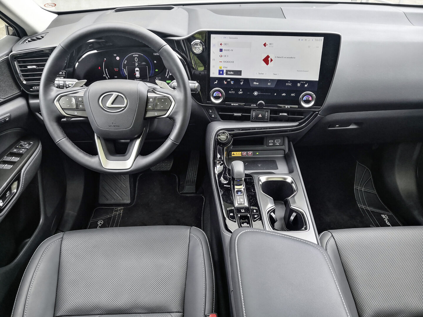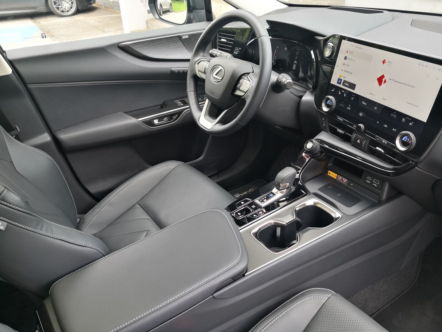 Dass man von einem Lexus-Hybrid erwarten kann, dass dieser gut funktioniert, ist klar. Mutterkonzern Toyota ist immer noch eine Benchmark in Sachen Hybridtechnik. Wer möchte kann auch zwischendurch per Knopfdruck auf rein elektrischen EV-Modus schalten. In der Regel ist es aber klüger den Lexus selbständig werken zu lassen. Beim Verbrauch spricht Lexus von durchschnittlich 5,9 Litern, im Test lagen wir bei 6,5 Litern. Für ein 4,7 Meter langes Benziner-SUV mit Allrad ein super Wert. Ein Satz zum Allrad: Dieser wird durch einen zusätzlichen E-Motor an der Hinterachse ermöglicht. Auch das Fahrwerk haben die Japaner sehr gut hinbekommen. Sicher nicht zu weich, auch nicht zu hart und trotzdem lassen sich enge Kurve flott nehmen. Es wirkt tatsächlich relativ dynamisch. Das mag auch mit der verstärkten Karosserie zusammenhängen. Beim Getriebe setzt man auf die Buchstaben CVT. Wir in der Redaktion sind da generell nicht so die absoluten Fans, auch wenn derartige Automatikgetriebe Vorteile haben. Unter anderem ermöglichen diese sparsames Fahren. Im Gegenzug muss man sich halt an die eher höheren Drehzahlen gewöhnen. Wobei, wenn schon ein CVT-Getriebe, dann so eins wie im Lexus. Im Grund passt es gut und fällt eigentlich nur beim beherzten Tritt aufs Gaspedal auf. kaum auf. Die Platzverhältnisse sind vorne sehr gut und auch hinten gibt es keine Kopfnuss für größer gewachsene Menschen. Trotz Coupéform passt die Kopffreiheit. Im Kofferraum verschwinden zwischen 545 und 1.436 Liter Ladegut.