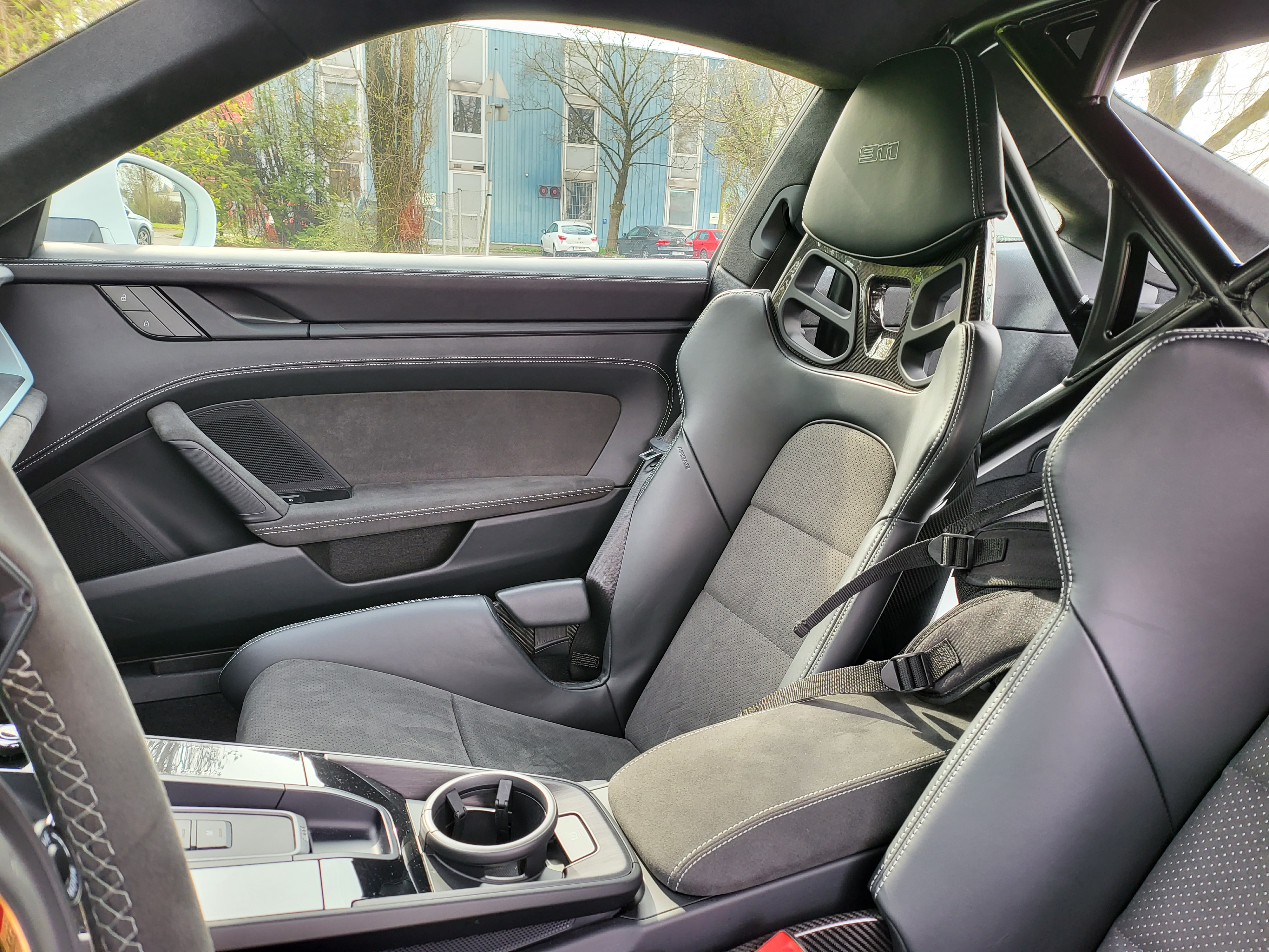 Einen Porsche 911 über ein buckelige Schotterpiste zu dreschen oder womöglich einen Sanddüne zu erklimmen, ist im Normalfall ungefähr so widersinnig wie mit einem Land Rover Defender auf einer Formel-1-Rennstrecke sein Glück zu finden. Porsche versucht diesen spannenden Spagat und bringt das limitierte Sondermodell Dakar auf die Straße – oder in diesem Fall „neben“ die Straße. Der Porsche 911 Dakar soll an den Dakarsieg im Jahre 1984 erinnern. Das Original war ein Ungetüm mit viel Kraft, null Komfort und einer Lautstärke, die wohl jeden Elefanten am Wegrand in die Flucht gejagt hätte. Wenn man im neuen 911 Dakar den Motor startet, wird klar, dass auch die moderne Version das Zeug hat, nicht nur die lieben Nachbarn frühmorgendlich aus dem Bett zu verjagen. Nein, der ist alles andere als ein leiser Weichspül-Sportler. Das zeigen auch die doch etwas harten, giftigen Carbon-Schalensitze. Und damit das Rallyefeeling aufkommt, wurde auch noch eine Art Überrollkäfig spendiert.