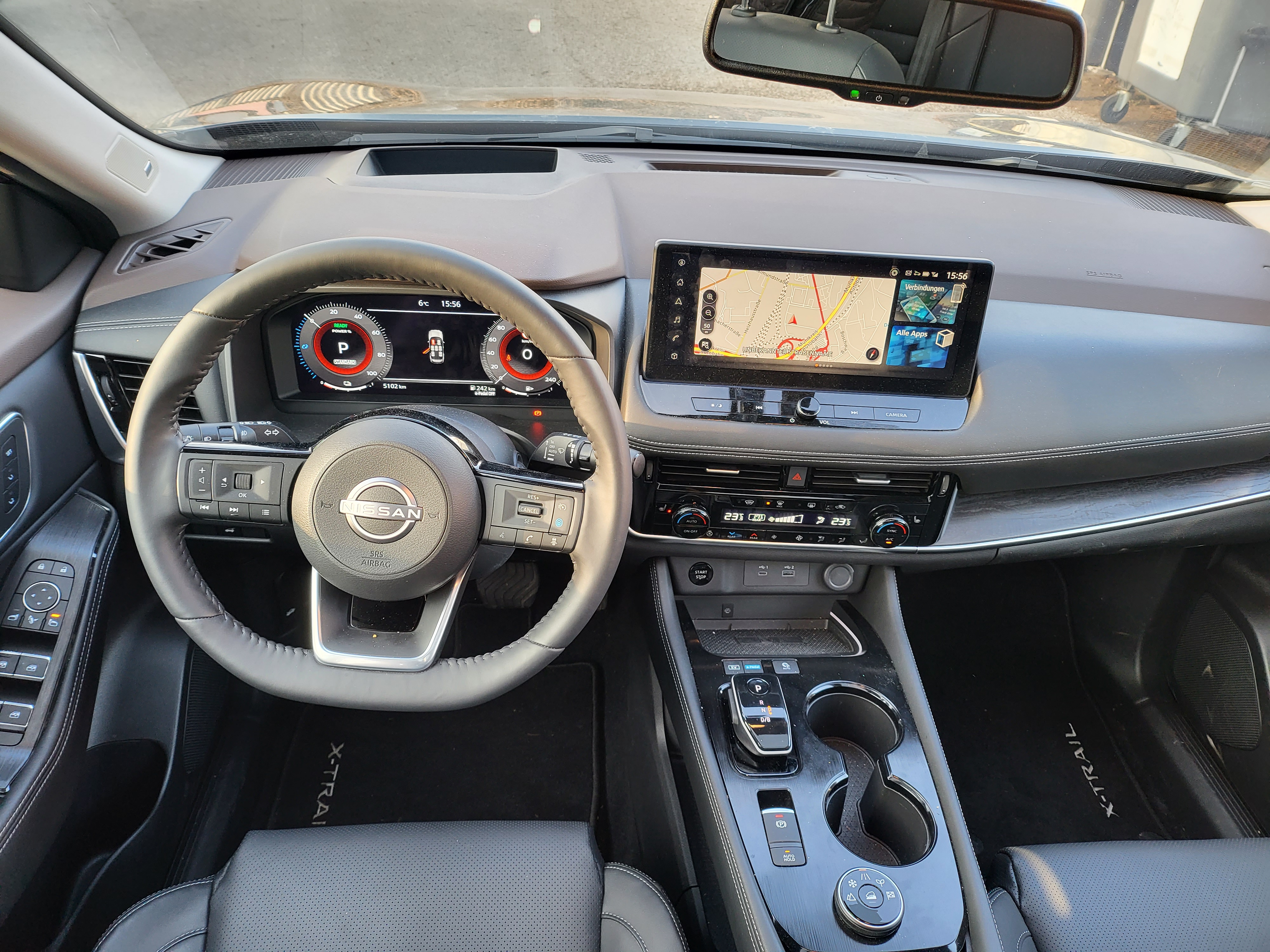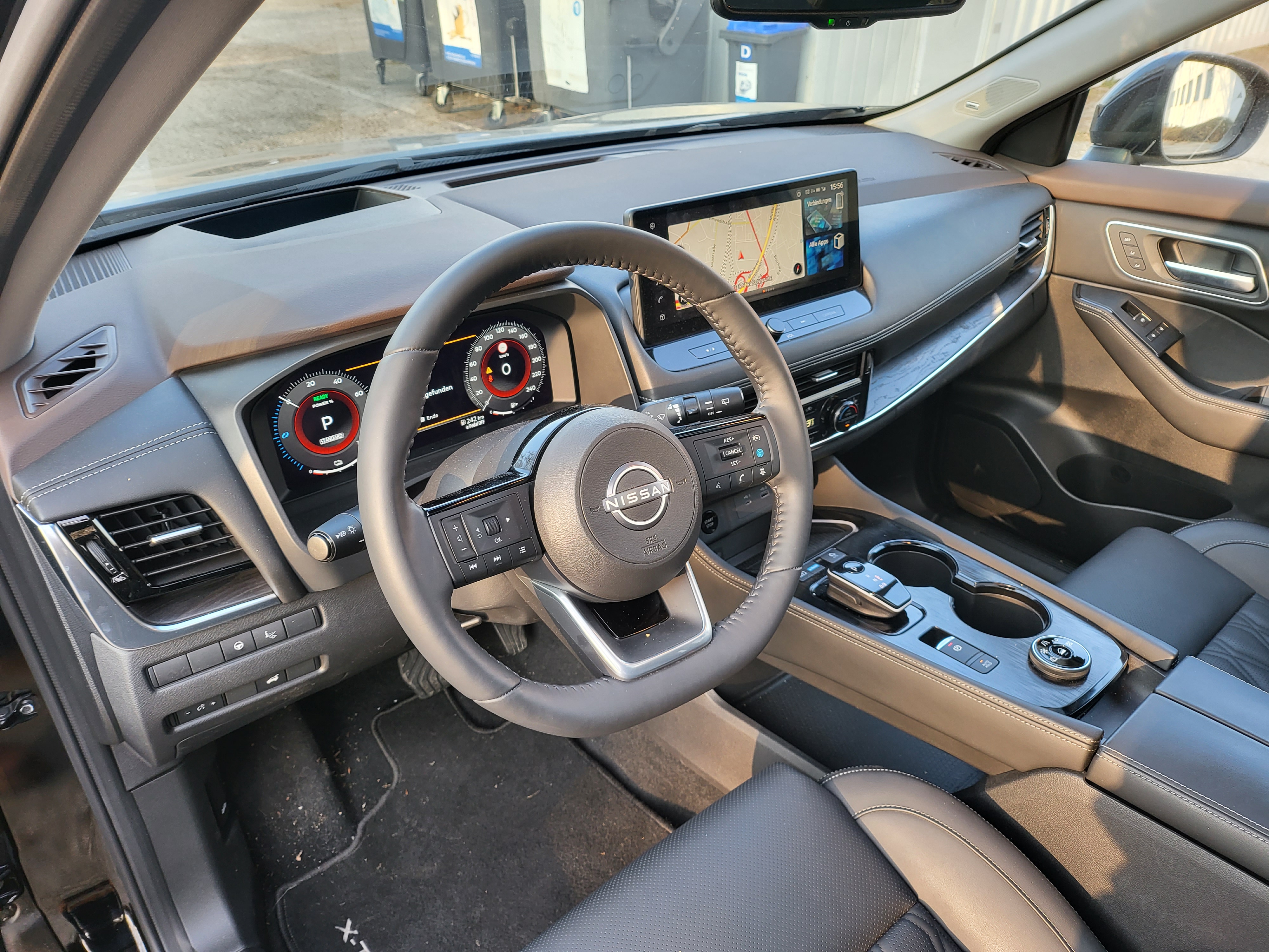 Knöpfe am Arbeitsplatz gibt es gerade so viele wie notwendig. Die wichtigsten Funktionen werden noch geschaltet und nicht via Screen befingert. Und das ist insbesondere bei der Bedienung der „Klima“ ein Wohltat. Generell gehört der X-Trail zur Kategorie „Auto in dem man gern fährt“. Auf Bedien-Experimente wird ganz einfach verzichtet. Innenraum: gerade so viele Knöpfe wie notwendig – das Hauptdisplay im Bereich Mittelkonsole ist ziemlich groß gewachsen. Im Grunde gibt es weder an der „Schnelligkeit“ noch an der Übersichtlichkeit der Screens etwas zu beanstanden. Innen gibt es zwar viel Kunststoff, aber der fällt überhaupt nicht auf – generell wurde gut verarbeitet. Fazit: Unterm Strich ein Auto, mit dem man gerne unterwegs ist. Langstrecken saugt der X-Trail förmlich in sich auf. Von der komplexen Hybridtechnik merkt der Fahrer nicht wirklich etwas. Das ist auch gut so. Jedenfalls ist diese Art eines Hybrids eine sinnvolle. Und der Preis: zu haben ist der NISSAN X-TRAIL AB 39.250,- in der 163 PS starken Basisversion. Mit e-Power sind es ab 42.490,- Euro. Das Testauto in der tekna+ Version startet bei 65.500,- Euro. Das ist natürlich schon eine Menge Geld. Andererseits ist der X-Trail technisch und von den Ausmaßen ein Großer.