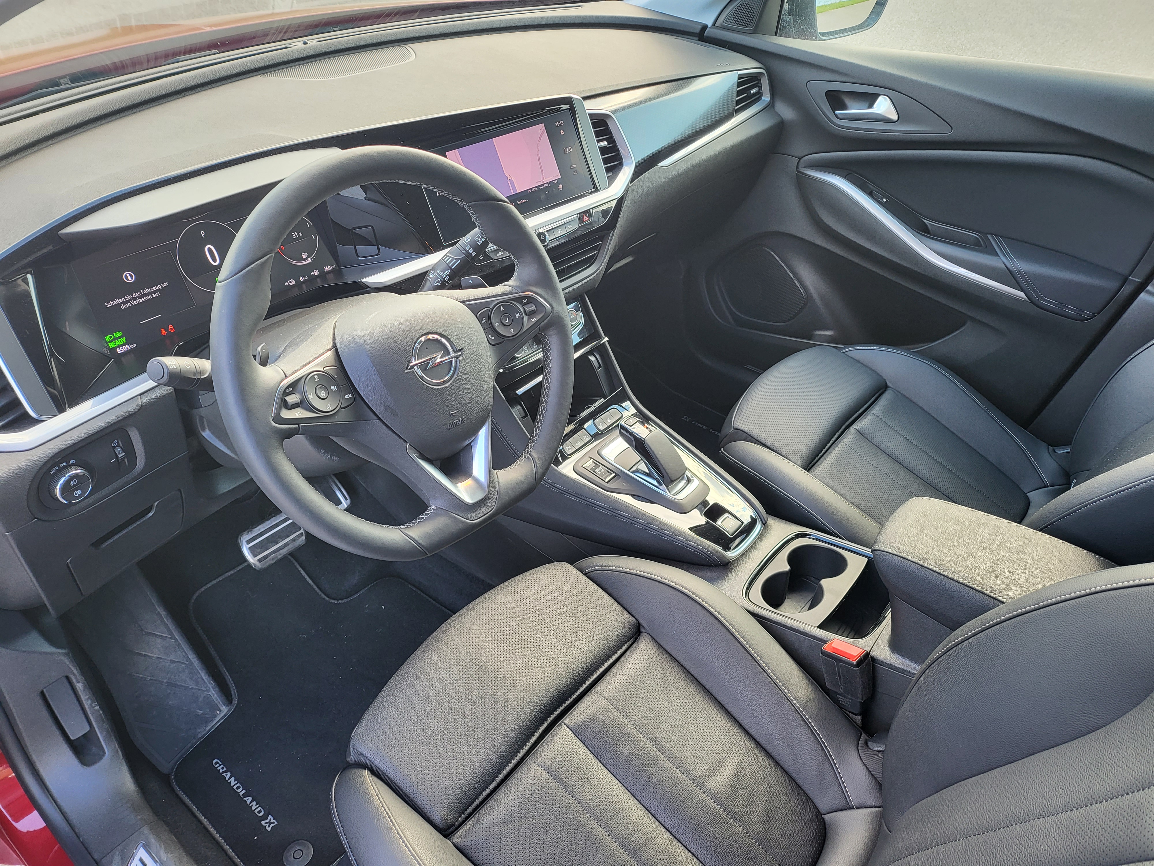 Der Opel Grandland sieht nach dem Facelift um einiges sportlicher aus, ist aber generell eher als Familienauto zu sehen. Diese Ansicht ändert sich bei der ersten Ausfahrt, denn das Zusammenspiel zwischen Benziner und E-Motor wirkt ziemlich flott. Immerhin macht der Grandland Plug-in-Hybrid mit Allradantrieb 300 PS Systemleistung locker! Irgendwie würde man das von diesem Auto nicht erwarten. Neben dem scharfen Plug-in mit Allrad gibt es noch einen Fronttriebler, der über immerhin 224 PS Systemleistung verfügt. In der flotten Testvariante ist ein 1,6-Liter-Turbobenziner verbaut, der von zwei E-Motoren zusätzlich befeuert wird. Vorne stehen 110 PS und auf die Hinterräder wirken 113 elektrische Pferde. Der Turbobenziner alleine leistet 200 PS. In 6,1 Sekunden ist der Hunderter erreicht. Das Fahrwerk geht als familienfreundlich bis komfortabel durch und lässt sich erst bei sehr hohen Kurvengeschwindigkeiten aus der Ruhe bringen. Man darf hier nicht vergessen, dass der Plug-in-Grandland fast 1.900 Kilogramm auf die Waage bringt. Verbaut ist ein doch schwere 13,2-kWh-Batterie. Eine Acht-Gang-Automatik schaltet zudem völlig unauffällig und schnell.