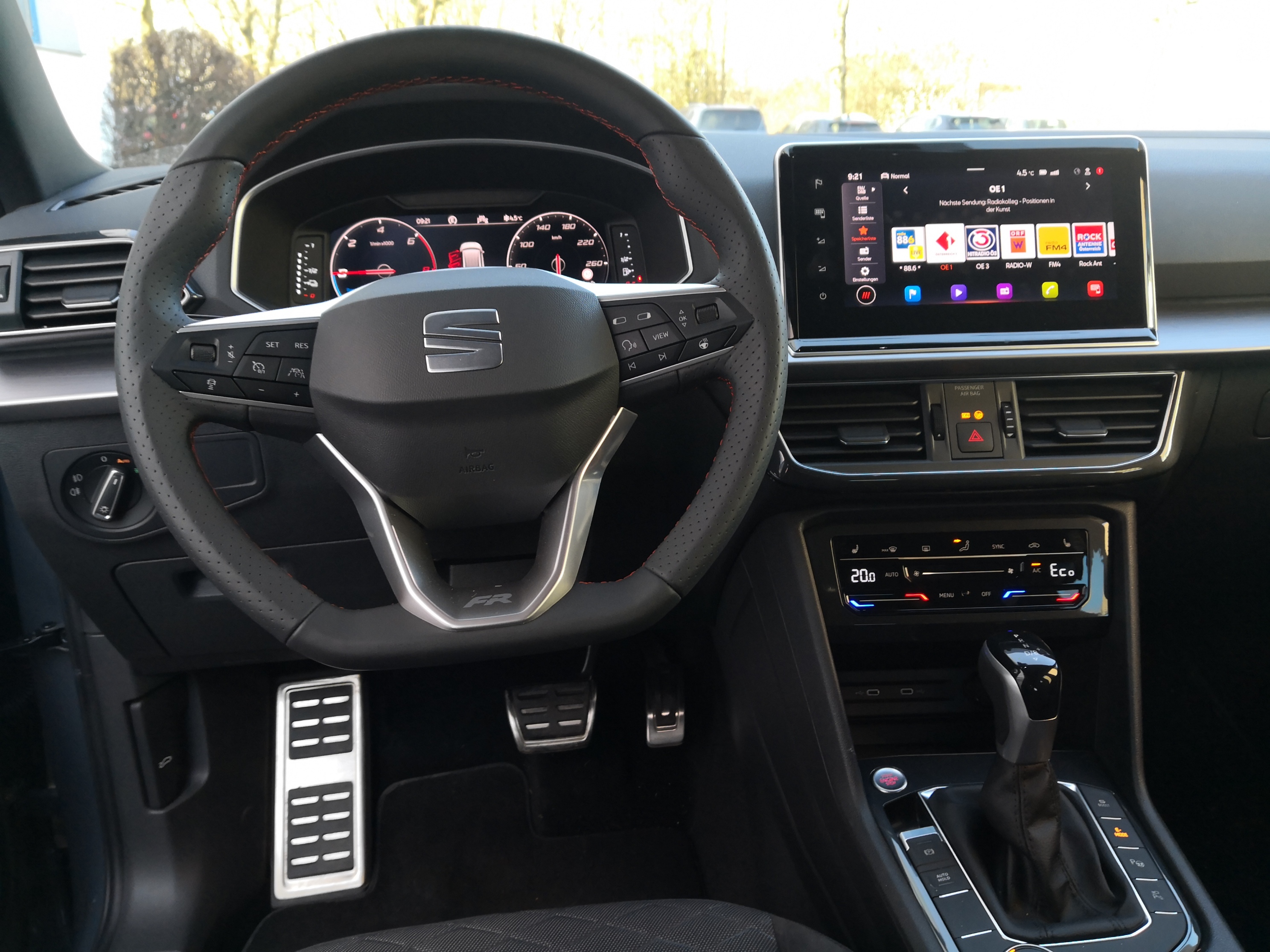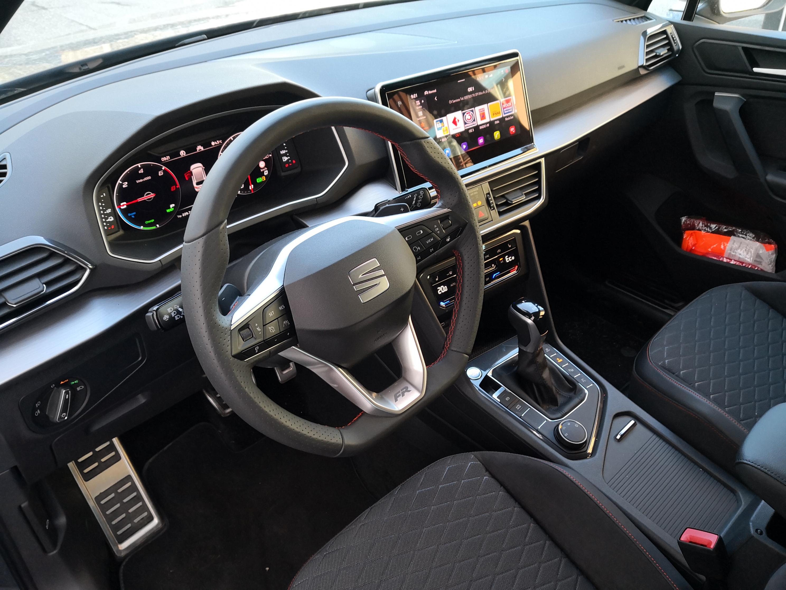 Wie soll ich mit einem Elektroauto auf Urlaub nach Italien fahren, ohne vier Stunden an der E-Tankstelle zu hängen? Derartiges hört man oft, wenn es um Elektroautos geht. Abgesehen davon, dass man wahrscheinlich ohnehin nicht jede Woche nach Italien fährt, gibt es noch eine andere Möglichkeit als rein elektrisch zu fahren. Seat bringt den Tarraco als Plug-In ins Spiel, der mit seinen 48 Kilometern rein elektrischer Reichweite vielleicht nicht nach Venedig fährt, aber sicher mit dem zusätzlich eingebauten Benzinmotor. 730 Kilometer Gesamtreichweite dürften reichen. Der Tarraco e-Hybrid hat laut WLTP-Zyklus einen Verbrauch von 1,8-2,2 Liter. Das erreicht man natürlich nicht, auf der genannte Fahrt nach Italien, aber wer täglich seine rund 40 Kilometer in die Arbeit und zurück fährt kommt sogar auf 0-2,2 Liter. Im Test schafften wir eine rein elektrische Reichweite im e-Mode von etwa 40 Kilometern. Der Plug-In ist so eingestellt, dass im genannten e-Mode tatsächlich fast 100 Prozent der Strecke gefahren werden kann. Erst bei 140 km/h ist wirklich Schluss. Bei derart hohen Geschwindigkeiten macht der rein elektrische Antrieb ohnehin weniger Sinn. Dass, der Fahrer daheim eine Steckdose haben sollte, versteht sich von selbst. Ohne eine solche wird es doch schwierig.
