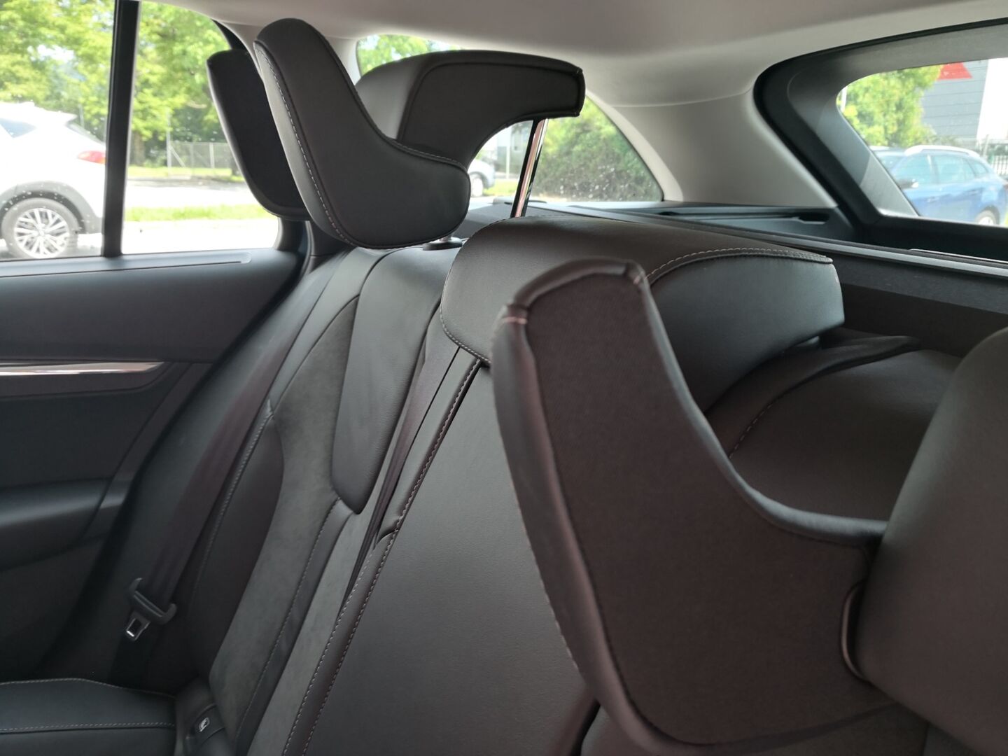 Über das neue Design unterhalten wir uns hier nicht – ist ohnehin gelungen und die Bilder sprechen für sich. Schreiben wir hier lieber über Dinge, die uns überrascht haben. Beispielsweise Fondkopfstützen mit einer Art „Schlaffunktion“ (Bild: unten). Oder einen Einfüllstutzen für das Scheibenwasser, damit nix verschüttet wird. Dann ein eingebauter Regenschirm in der Fahrertür, die Handytasche in der Rücklehne und das Einspeichenlenkrad. Auch eine Ladeabdeckung, die im Ladeboden des Kofferraums verschwindet, ist so ein Punkt. Alles sehr praktisch bis eben clever gemacht – wie der riesige, um 30 Liter auf 640 Liter gewachsene Kofferraum. Das hängt übrigens mit der „neuen“ Länge von knapp 4,7 Metern zusammen. Damit ist der Octavia fast in der Kompaktklasse angekommen. Das bedeutet auch mehr Beinfreiheit für die Fondpassagiere! Im Cockpit thront ein 10-Zoll-Touchscreen sowie das Virtual Cockpit. Alles lässt sich einigermaßen logisch bedienen. Etwas störend fanden wir die Lautstärkenregelung Slide-Touch. Wie beim Konzernbruder Golf doch ziemlich gewöhnungsbedürftig. Im Gegenzug gibt es aber praktische Tasten, die direkt in Menüs des Screens führen.