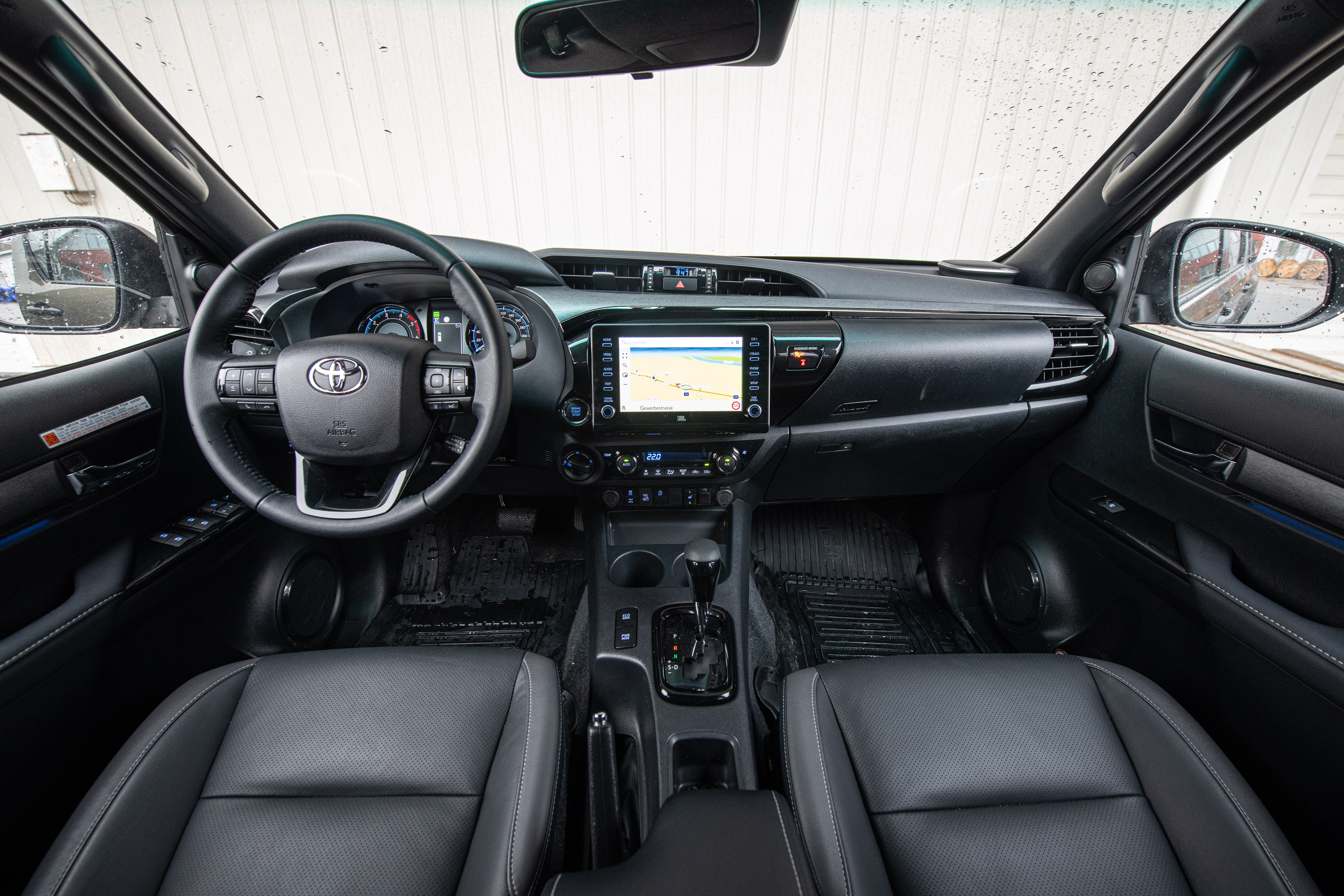 Pickups sind fürs Grobe gebaut und das gilt auch für den Hilux, der den Ruf hat so gebaut zu sein, dass nix kaputt gehen kann – ist also keine Komfortabel. Das Rüpelhafte älterere Hiluxmodelle hat der neue eindeutig abgelegt. Wenn allerdings ein normaler Wendekreis zum Komfort gehört, ist man an der falschen Adresse. Jede Parklücke will da genau anvisiert werden – sonst wird das nix. Der 2,8-Liter-Diesel (Alternativ wird ein 2,4-Liter mit 150 PS angeboten) gibt sich auf Autobahnen bei hohen Geschwindigkeiten ruhig und dümpelt im Drehzahlkeller herum. Er brummt zwar unter Last schon etwas laut, aber keinesfalls störend. Sogar ein Überholvorgang ist kein zu großes Problem. Immerhin stehen 204 PS zur Verfügung, die den 100er in gut zehn Sekunden (mit Automatik) schaffen. Auch der Sitzkomfort passt ganz gut – dieser Hochsitz will aber erste über ein Trittbrett erklommen werden – dafür gibt es dann aber einen guten Ausblick von oben auf den Rest des Verkehrs. Die Platzverhältnisse sind für Fahrer und alle Passagiere (auch die auf den hinteren Rängen) sehr gut. Der Arbeitsplatz bzw. das Cockpit gibt uns zwar keinen Blick in Zukunft, sondern ist praktisch aufgebaut – inklusive der typischen Toyota-Digital-80er-Uhr. Der 8-Zoll-Bildschirm aus dem Toyota-Regal ist so wie bei allen Modellen und auch die Armaturen sind so wie wir es von den Japanern gewohnt sind. Das klingt also alles sehr alltagstauglich. Aber natürlich gibt es so einige Dinge, die einen erkennen lassen, dass es ein Pickup ist.