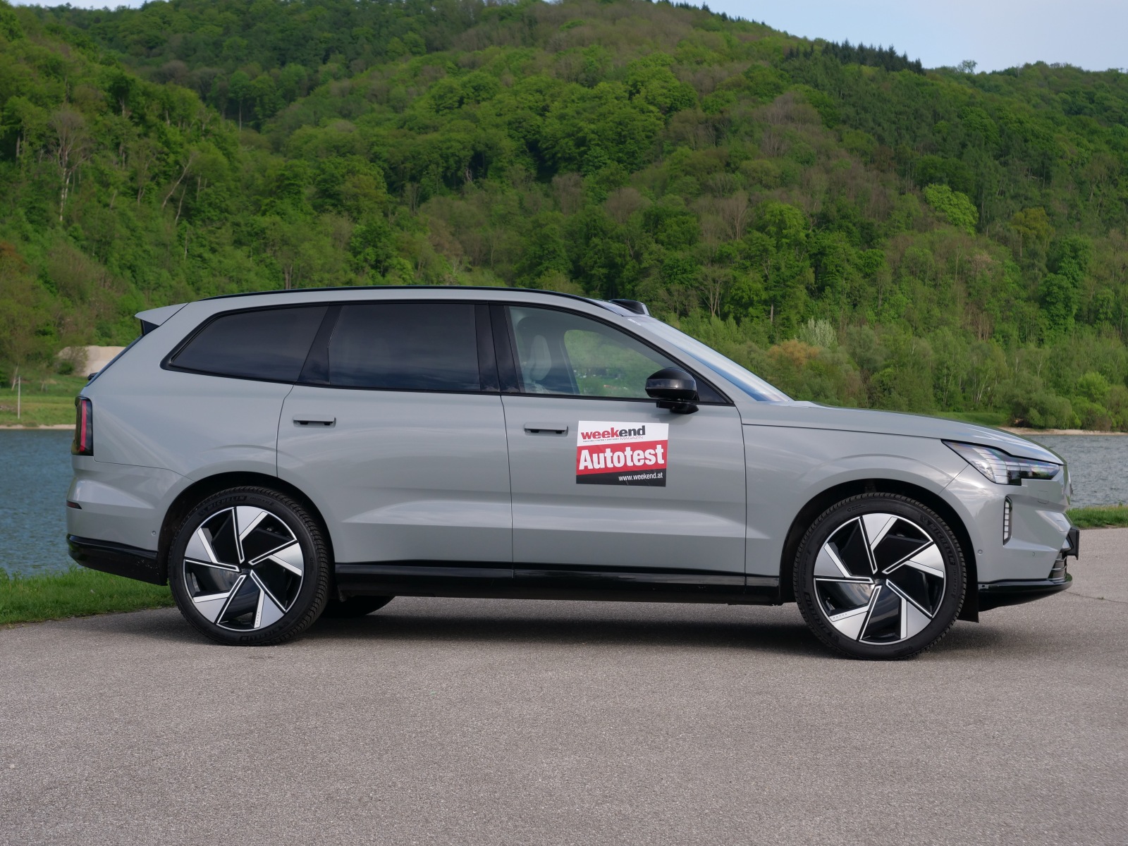 408 Allrad-Pferde helfen dem Test-EX90 ordentlich zu beschleunigen. Mit 770 Newtonmetern Drehmoment geht es ordentlich vorwärts! Bei 180 km/h Spitze ist Schluss. Zu wenig für ein Luxusauto? Mit E-Autos über 200 Sachen zu fahren ist aber ohnehin kontraproduktiv und in Österreich sowieso nicht erlaubt. Nun zur Reichweite: Der Volvo EX90 gehört zu jenen Elektroautos, die auf eine sehr große Batterie setzen. Nicht ganz 100 kWh stehen bereit. Das soll eine Reichweite von 616 Kilometern ergeben. Wie bei allen E-Autos gilt auch hier. Im Winter ist das sicher nicht zu schaffen und wer auf der Autobahn den Elektro-Gasfuß strapaziert, wird auch mit weit weniger Reichweite leben müssen. Im Test mit eingeschalteter Klimaanlage können wir einen Durchschnittsverbrauch von 22 kWh unterschreiben. Für ein derart großes Allrad-E-Auto passt das sicher gut.