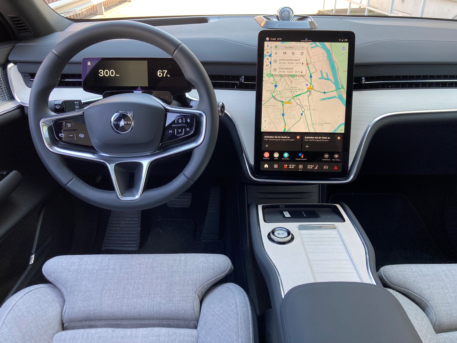 Volvo verspricht den leisesten Volvo aller Zeiten. Tatsächlich gibt es nur wenige Autos am Markt, die nur annähernd derart ruhig agieren. Damit ist aber nicht der Motor gemeint – ein E-Motor ist sowieso leise – sondern es fehlen Wind- und Fahrgeräusche. Dadurch wird die Langstrecke ruhig und ziemlich entspannt gefahren. Dazu kommt das Luftfahrwerk, das alles extrem gut wegbügelt. Vor allem kleinere lästige Unebenheiten auf der Straße, verschwinden quasi. Wer also Langstrecken liebt, wird den EX-90 auch lieben. Massagesitze und mächtig Power erweitern den Fahrkomfort.
