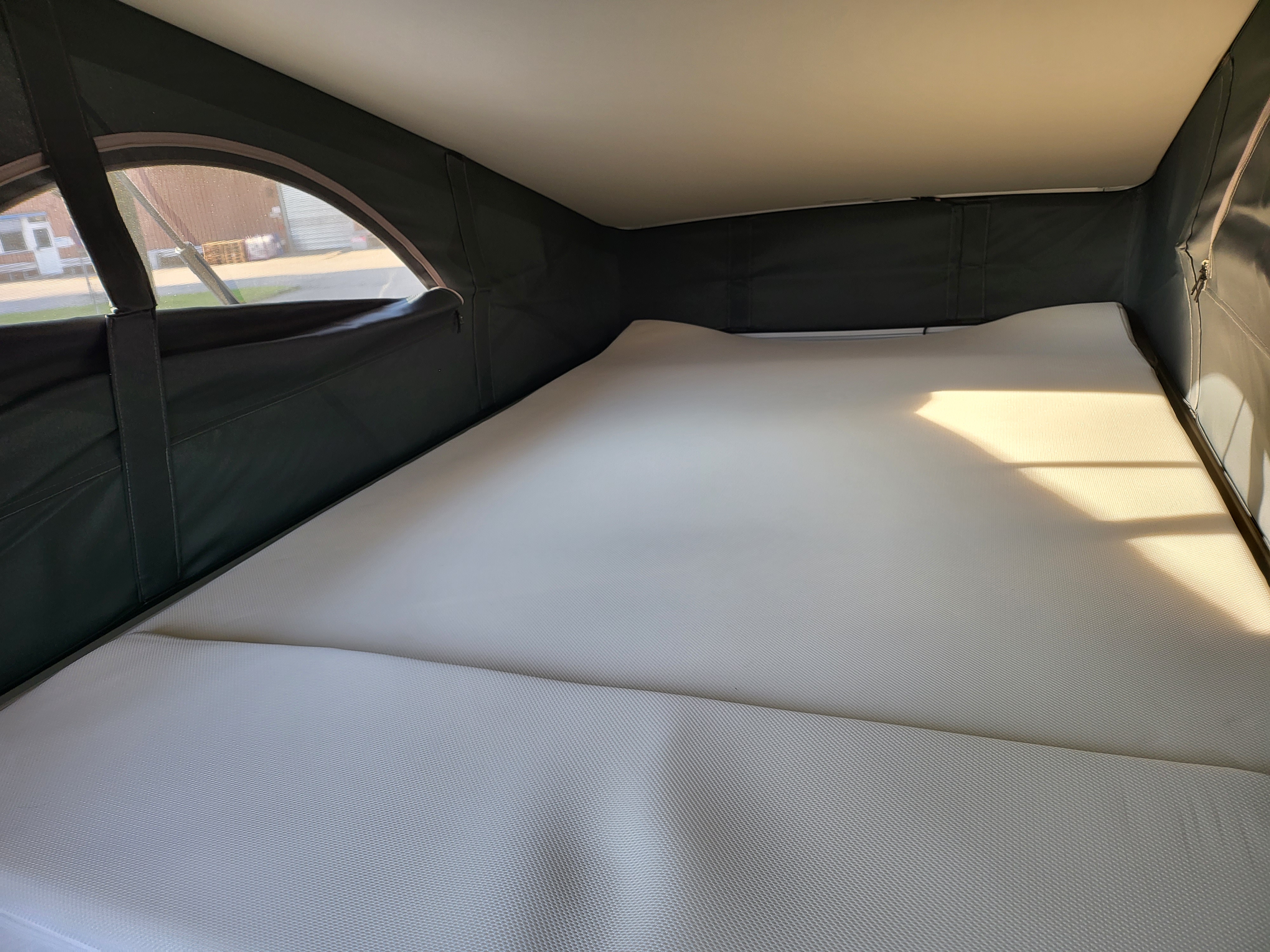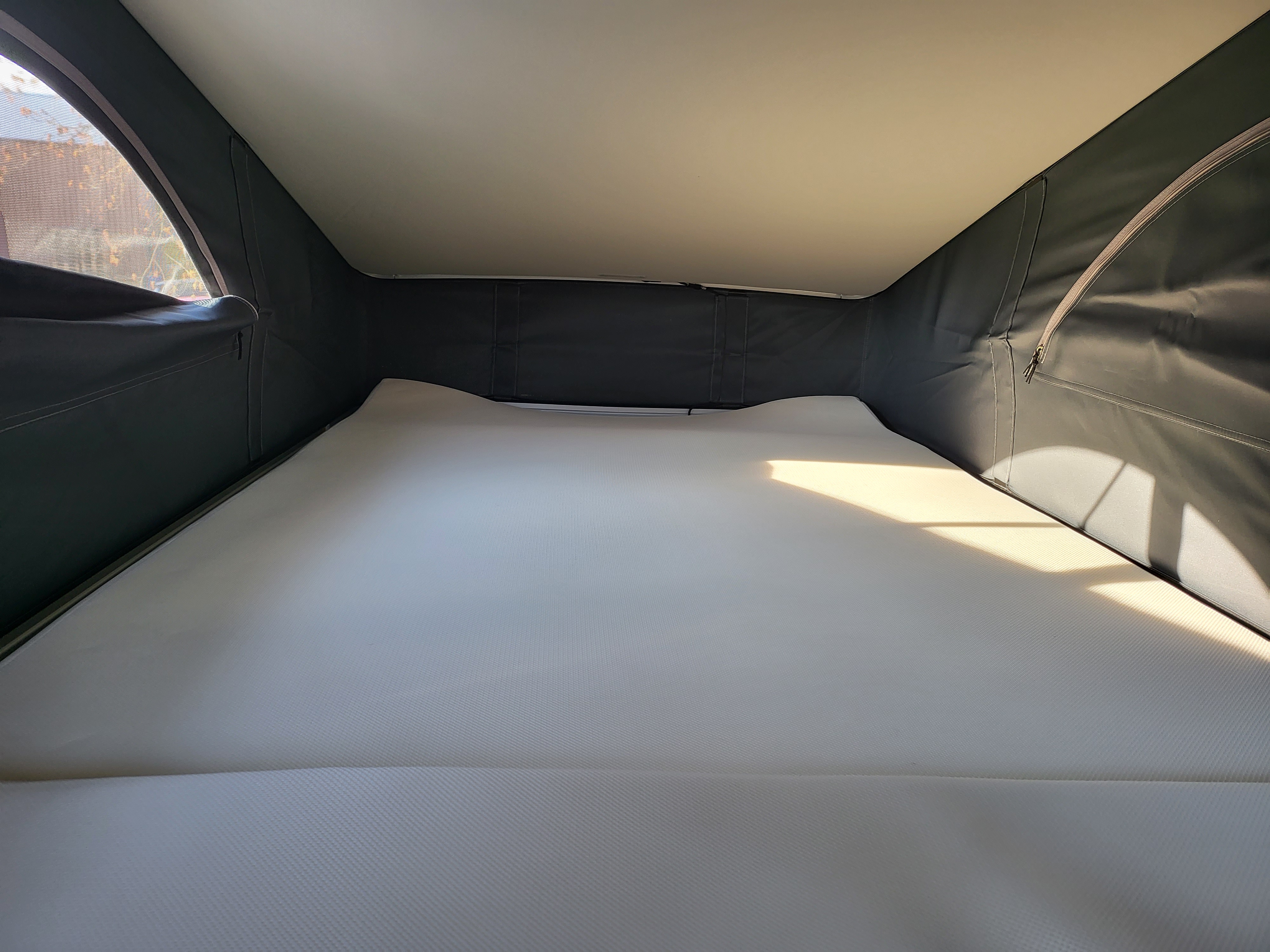 Wer in seinem Leben irgendwann mit einem Wohnmobil ohne ordentliche „Stehhöhe“ unterwegs war, wird wissen, wie wichtig es ist, nicht immer auf den Knien herumzurutschen. Für alle Nichtcamper – hier die Vor- und Nachteile eines Hochdachs. Wie schon im Text angedeutet, können vier Personen im California Beach schlafen. Das funktioniert nur deshalb, weil zwei Personen im ersten Stock die Nacht verbringen. Dieser entsteht nach Anheben des Daches. Im Hubdach befindet sich eine große Liegefläche, die tagsüber in die Höhe geklappt werden kann. So kann man darunter gut stehen. Logischerweise ist des Nächtens ein aufrechtes Stehen im Erdgeschoß nicht möglich. Der Zugang zum Hubbett ist von der Fahrerkabine aus möglich. Der Aufbau ist relativ einfach. Links und rechts entriegeln, kräftig nach oben drücken und fertig. Da das Dach großteils aus Stoff gefertigt ist, kann es bei niedrigen Temperaturen durchaus etwas kühl werden. Besonders gefallen hat uns deshalb die eingebaute Standheizung, die auch bei Minusgraden ein Campen erlaubt.
