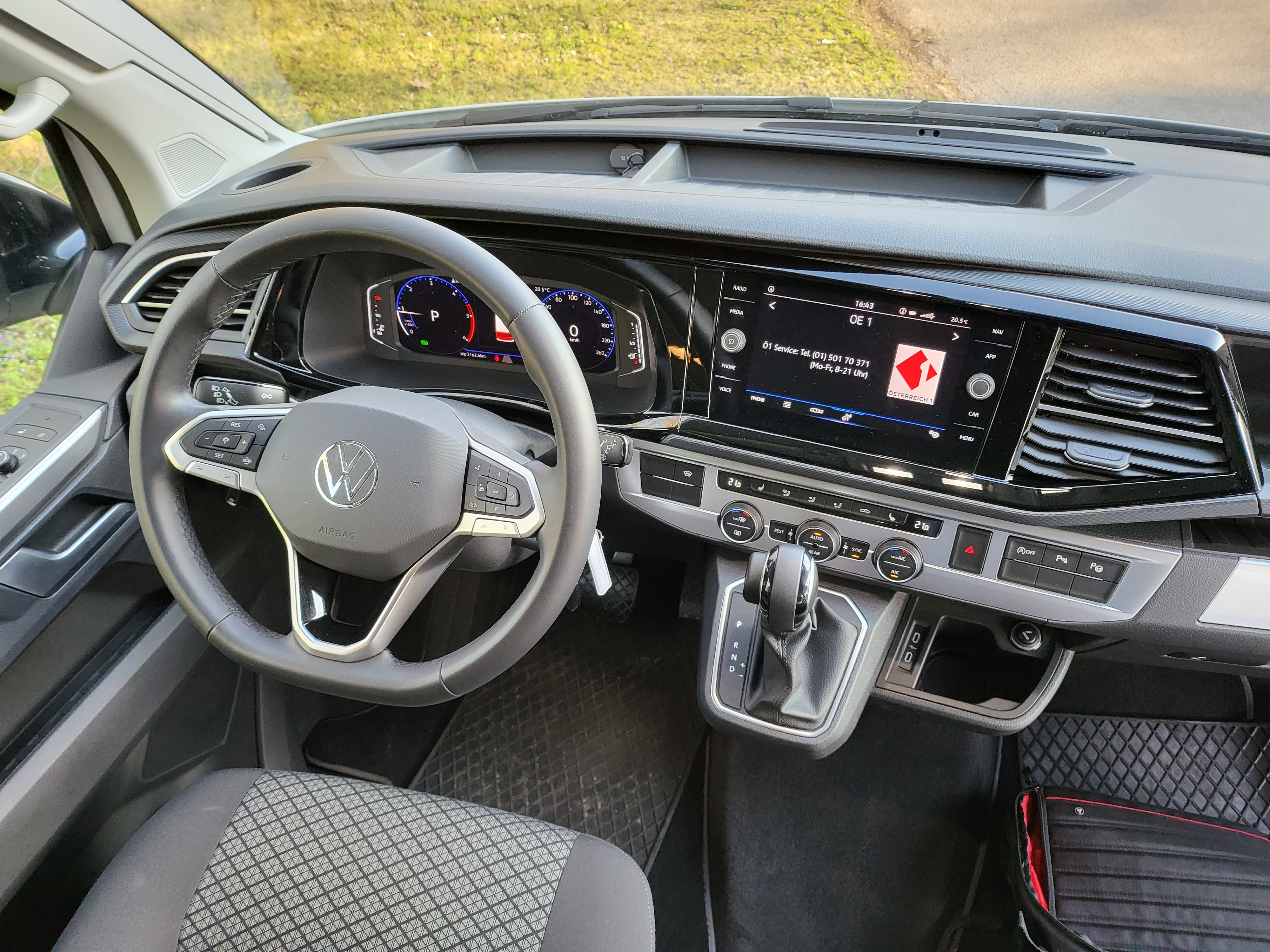 Der Zweiliter Diesel mit 150 PS ist sicher keine Rakete, passt aber gut, um stressfrei eine lange Reise anzutreten. Eine kleine Anfahrschwäche muss sich der Test-VW allerdings schon nachsagen lassen. Handling, Fahrwerk, Lenkung sind so wie bei allen T-Modellen angelegt – da passt alles. Beim Verbrauch spricht der Hersteller von 8 bis 9,5 Liter. Im Test schafften wir bei braver Fahrweise neun Liter. Im Stadtverkehr geht’s in der Regel über 10 Liter. Dabei darf man nicht vergessen, dass ein Allradantrieb im Hintergrund werkt. Der Arbeitsplatz wirkt zusammengeräumt – das Display im Bereich der Mittelkonsole lässt sich gut bedienen. Und ganz wichtig! Ein California schafft bis zu 640 Kilo Zuladung. Das ist verglichen mit anderen Campern bis 3,5 Tonnen ein guter Wert. Fazit: Der getestete California Beach Edition ist nicht nur optisch ein echter Hingucker. Er ist absolut alltagstauglich und keinesfalls als Camper zu sehen, denn man im Juni auswintert, um dann auf Urlaub zu fahren. Nein, das Ding will ganzjährig genutzt werden – weil es ja auch tatsächlich möglich ist. Ein Dauercamper also! Noch ein Tipp: Eine Küchenzeile wie im Ocean bringt schon deutlich mehr Camperfeeling. Daran sollte man denken.