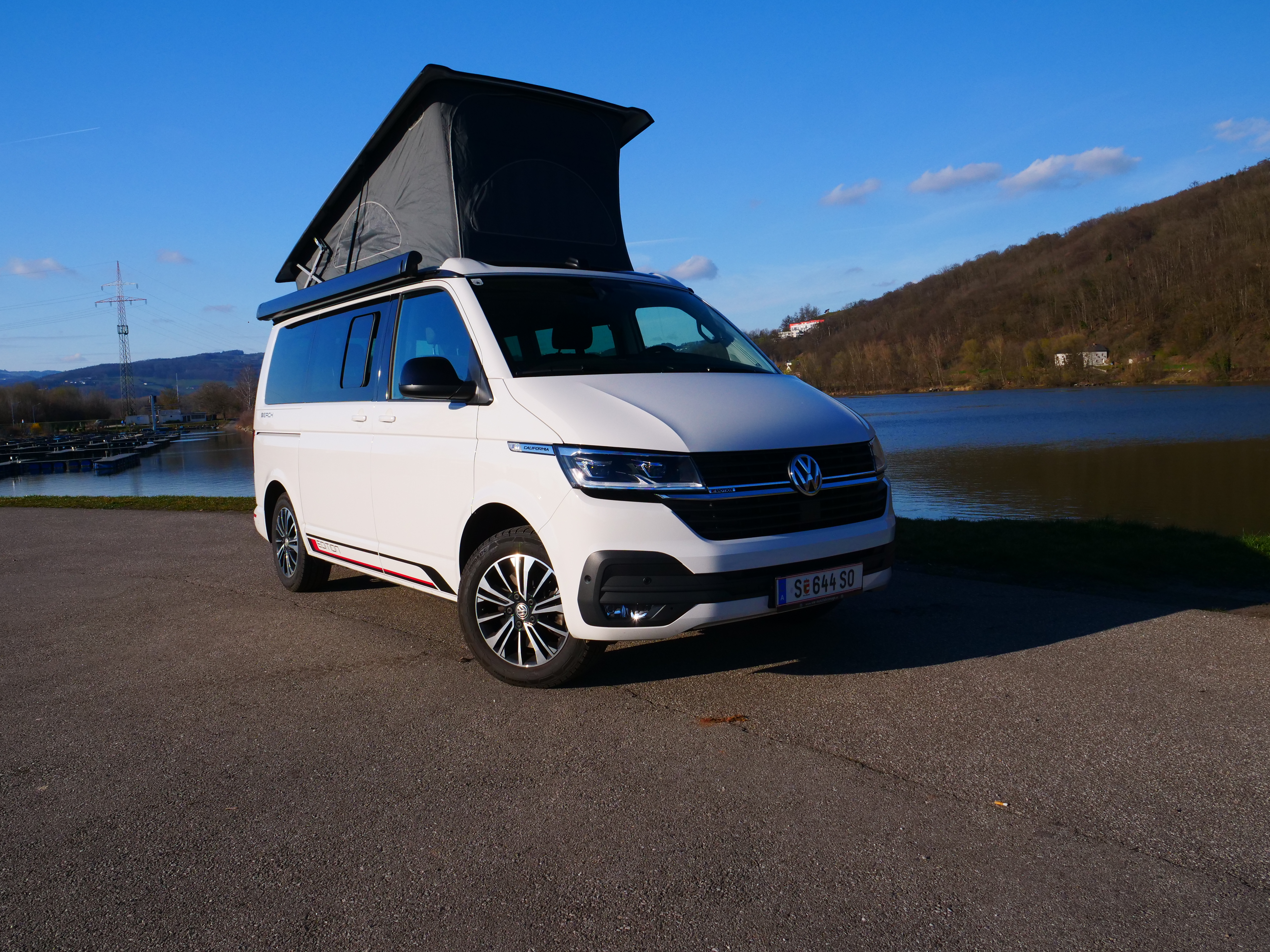 Wohnmobile verkaufen sich derzeit fast so schnell wie die Preise steigen. Zehn Jahre alte Wohnmobile, die gut erhalten sind, zu einem Preis unter 40.000 Euro, sind so etwas wie ein Lotto Sechser. Seit einigen Jahren gibt es einen echten Camper-Boom. Dass der „VW-Bus“ hier eine große Rolle spielt ist keine Überraschung. Warum aber sind Modelle wie ein California oder eben ausgebaute T-Modelle so beliebt? Immerhin kostet der hier getestete VW California Beach Edition in überkompletter Ausstattung 105.000 Euro. Wobei die Beach-Variante schon bei 78.630,- startet. Mit Küchenzeile wird es noch teurer. Wer eine solche haben will muss den California Ocean nehmen, der ab 97.000 Euro startet. Die Beliebtheit des California hat mehrerlei Gründe. Zum einen ist der Wiederverkaufswert ein extrem hoher und einen VW-Campingbus wird man jederzeit um gutes Geld wieder los. Ein weiterer Vorteil ist die relativ kompakte Größe. Man kann noch einigermaßen normal parken und sogar in Tiefgaragen darf man sich wagen. Ausgestattet mit einem Hochdach, kann man sogar zu viert mit der Familie auf Urlaub fahren und im Camper ohne Probleme schlafen. Und: Ein VW California hat durchaus auch als Alltagsfahrzeug seine Berechtigung. Viele verzichten auf einen zusätzlichen PKW und fahren mit dem Camper in die Arbeit und zum Einkaufen. Man spart sich demnach ein zusätzliches Fahrzeug. Dazu kommen ein dichtes Werkstattnetz in ganz Europa, Ersatzteile gibt es an jeder Ecke und generell gelten die Bullys als langlebig.