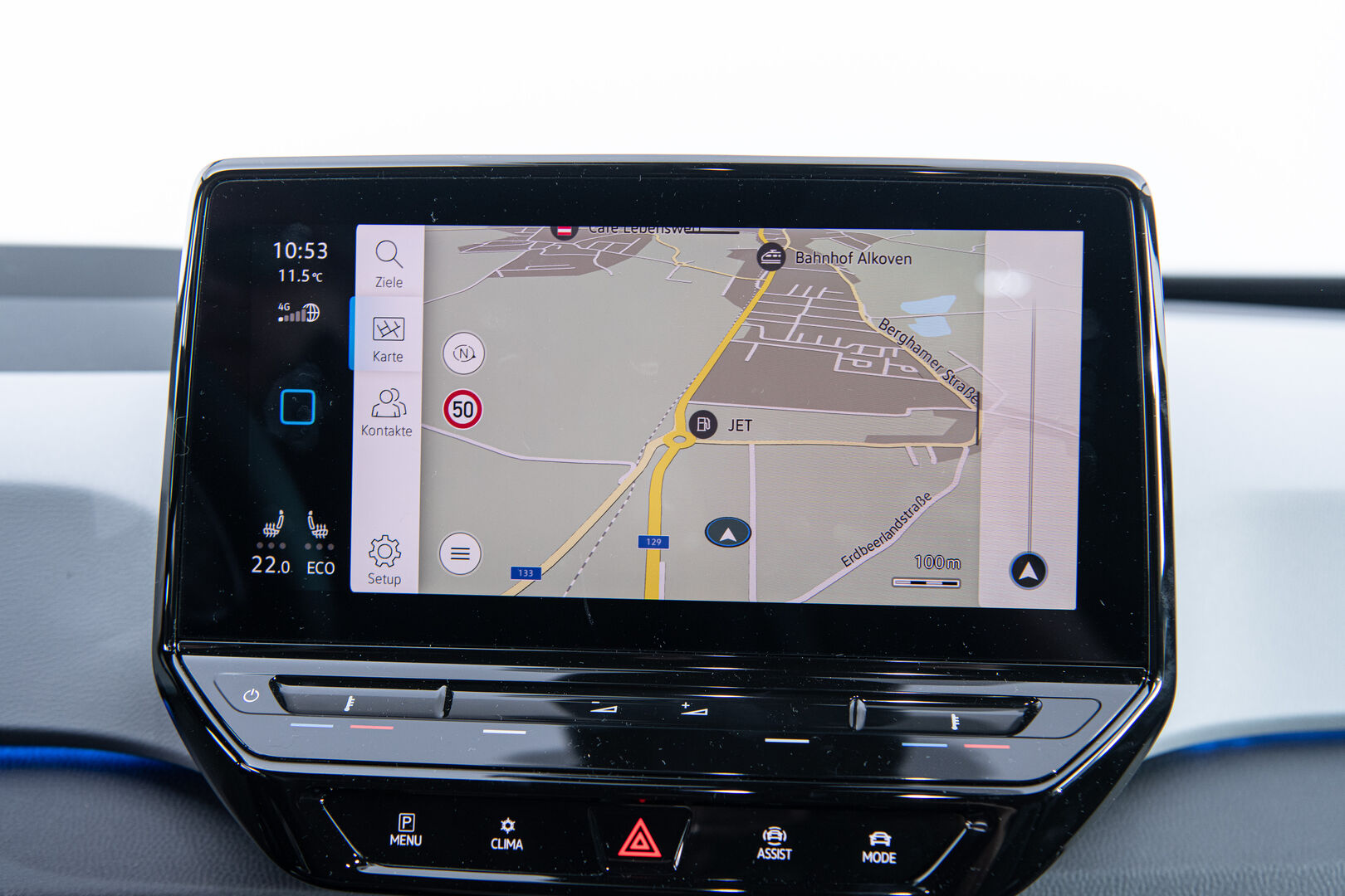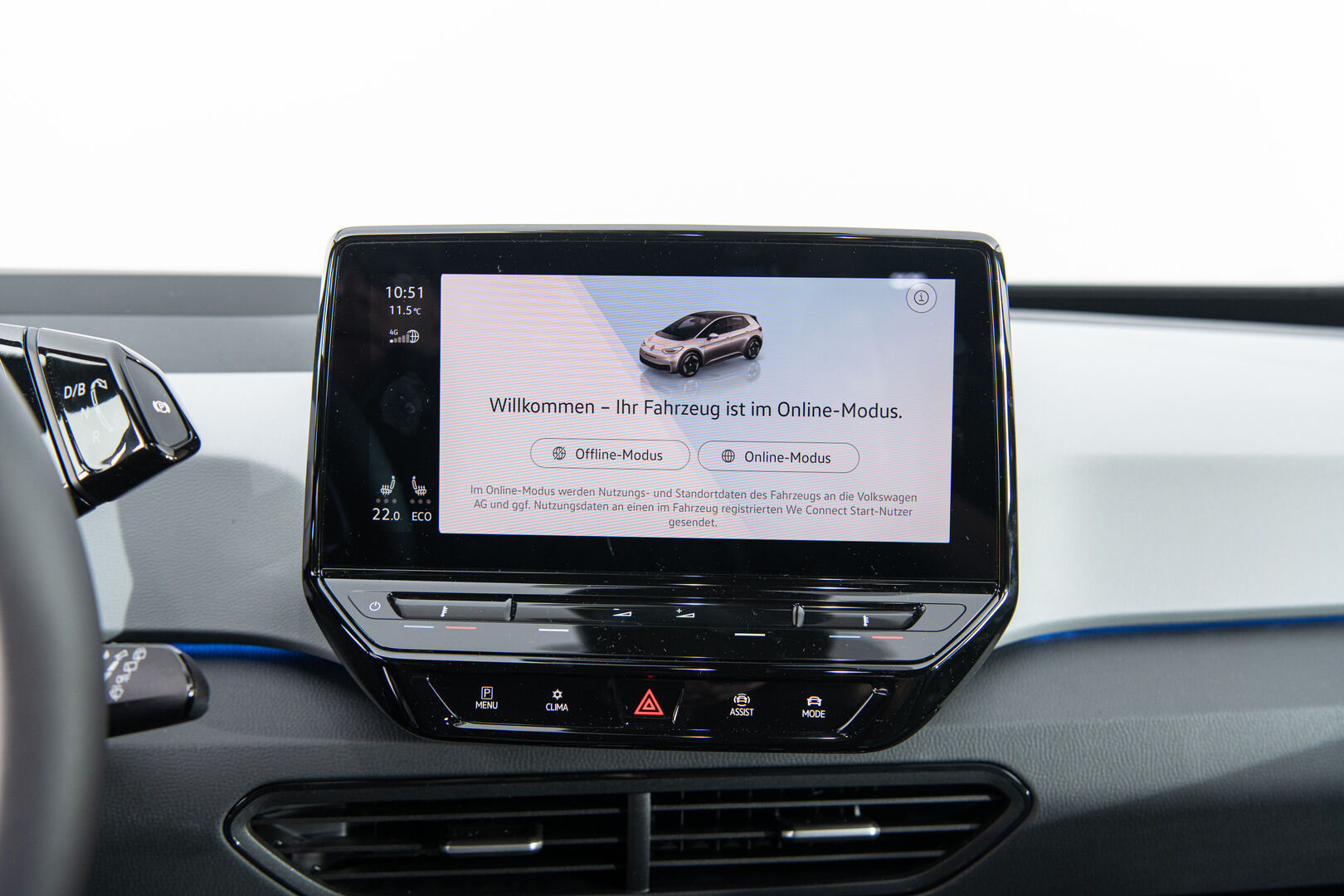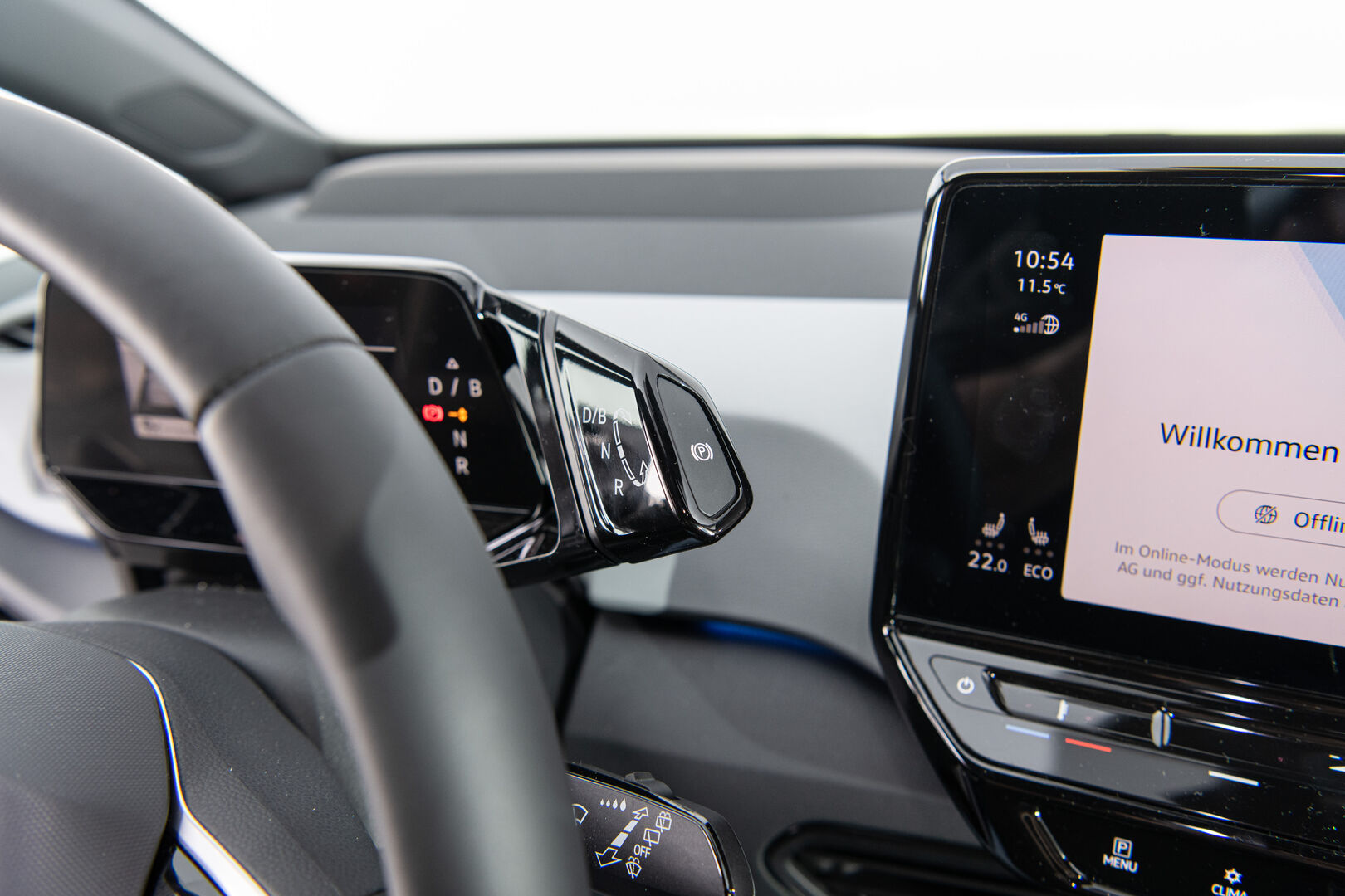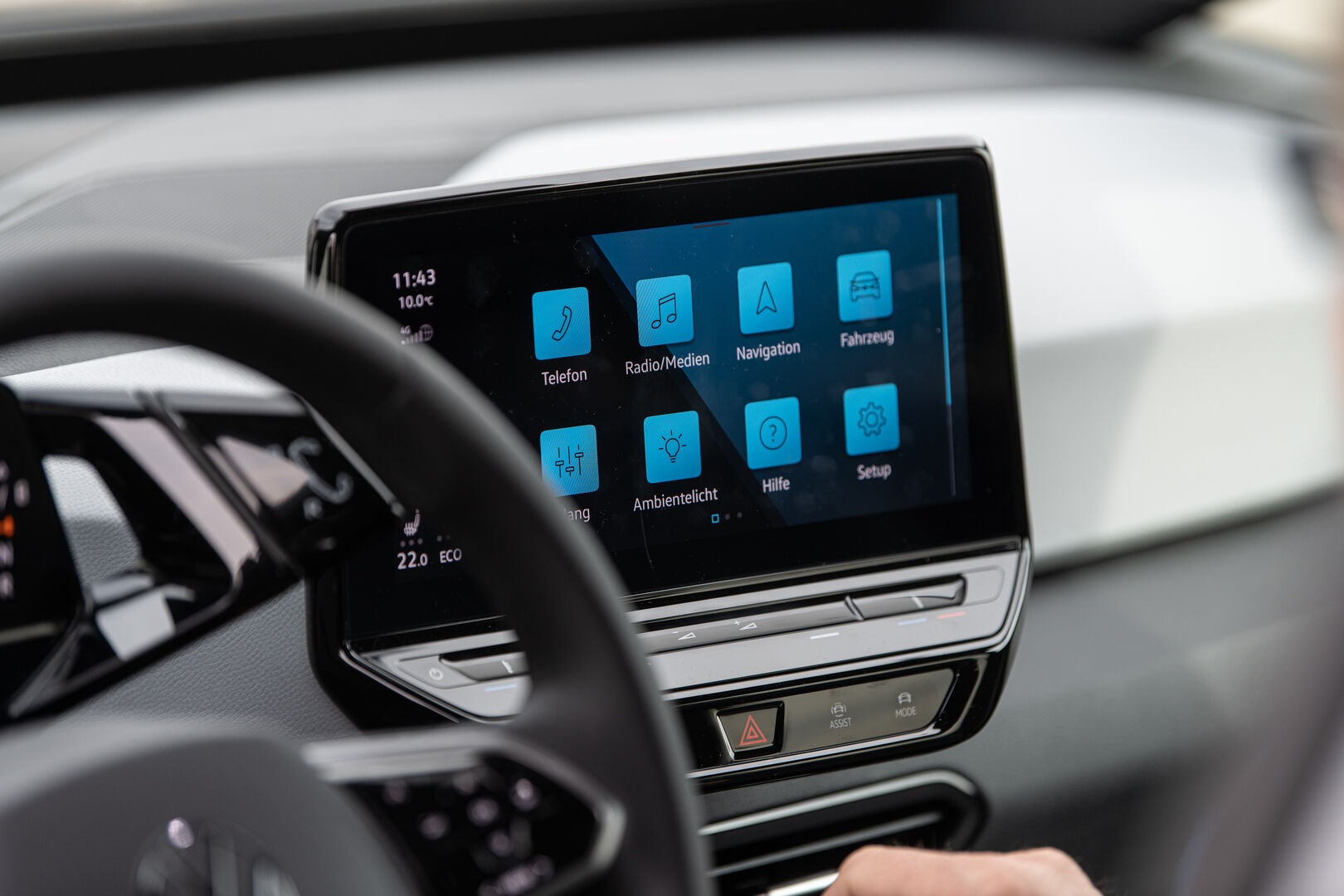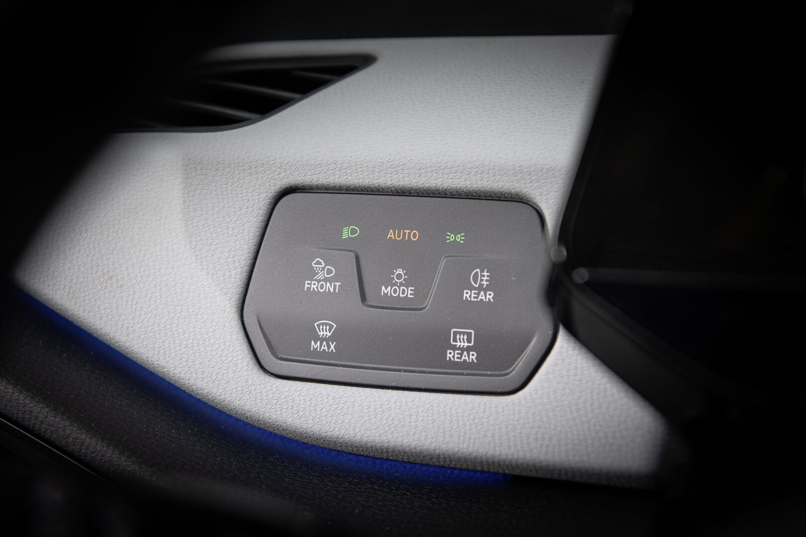 Knopflos: Knöpfe findet man im ID.3. nur wenige – so wie beispielsweise, die für Scheibenheizung oder Scheinwerfer.