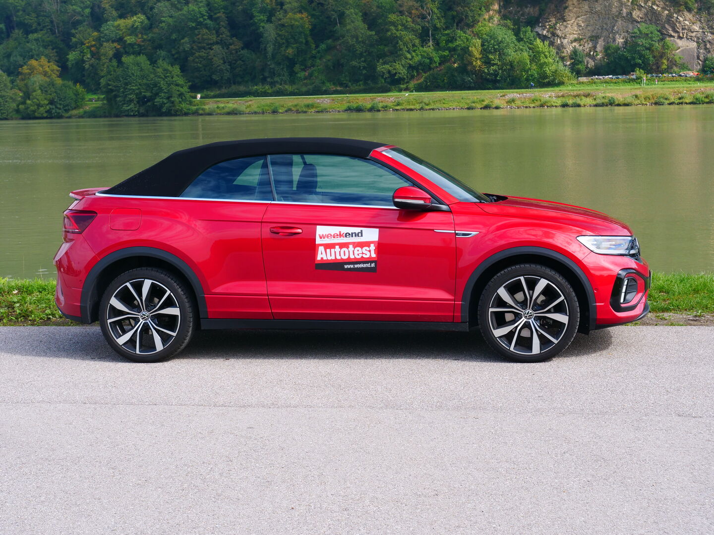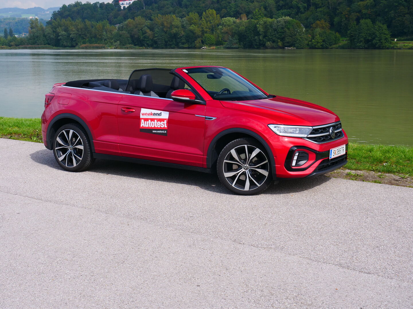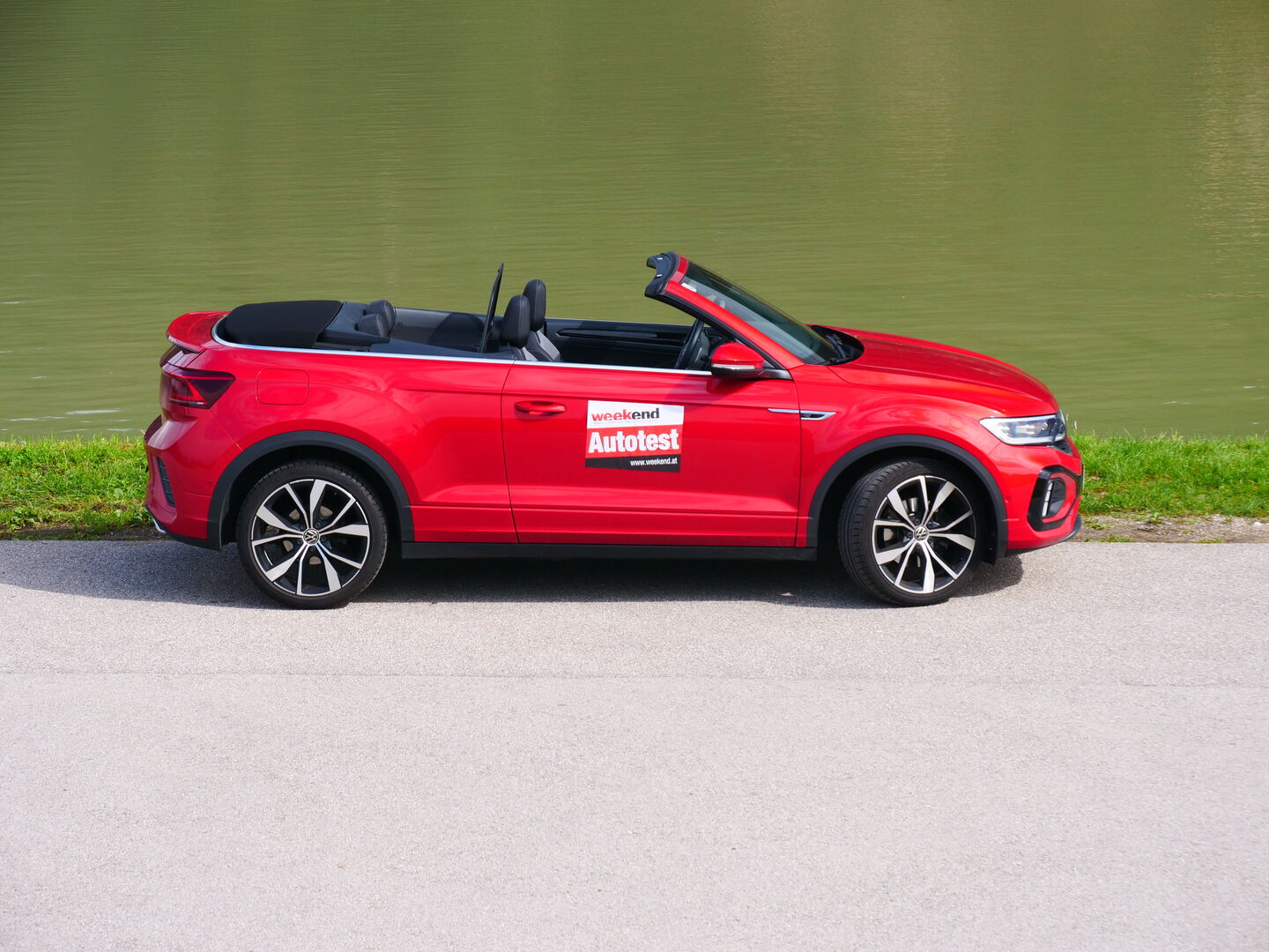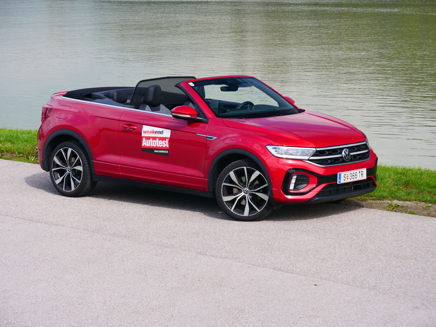 Das Kofferraumvolumen fällt eher klein aus, was aber dem geschuldet ist, dass wir von einem Cabrio sprechen. Cabrios mit großem Kofferraum gibt es de facto nicht. Im Falle des T-Roc sind es 284 Liter Ladevolumen. Fahrer und Beifahrer haben gute Platzverhältnisse – ohne Abstriche. Auf den hinteren Rängen geht es etwas enger zu. Langstrecken sind so gesehen für Mitreisende auf den Rücksitzen (2 Personen) eher anstrengend. Aber auch das ist „typisch Cabrio“. Das Stoffverdeck öffnet vollautomatisch in neun Sekunden. Wenn Regen aufkommt, schließt es sich in elf Sekunden. Das Ganze geht auch während der Fahrt. Vorausgesetzt man fährt langsam genug. Genauer gesagt 30 km/h. Wir möchten ja nicht, dass uns das Dachl um die Ohren fliegt. Aber das lässt die Technik ohnehin nicht zu. Das Testcabrio war mit einem 150-PS-TSI ausgerüstet, der ganz gut zum Auto passt. Auch das Zusammenspiel des 7-Gang-DSG mit dem 1.5 TSI geht als lupenrein durch. Zusätzlich gibt es das T-Roc Cabriolet auch mit 110 PS und 6-Gang-Handschalter. Wobei wir eher die 150-PS-Version empfehlen würden. Ein bisserl Fahrspaß schadet bei einem Cabrio sicher nicht. Eine 190-PS-Variante gibt es – im Gegensatz zu T-Roc mit Dach – nicht. Beim Verbrauch sprechen wir von kombiniert 5,5 Litern (NEFZ). Der Startpreis des T-Roc Cabriolet liegt bei 31.190,- Euro,-. Das Test-Cabrio in der R-Line und mit umfangreicher Zusatz-Ausstattung wie speziellen 19-Zoll-Alurädern lag bei einem Endpreis von 53.000,- Euro.