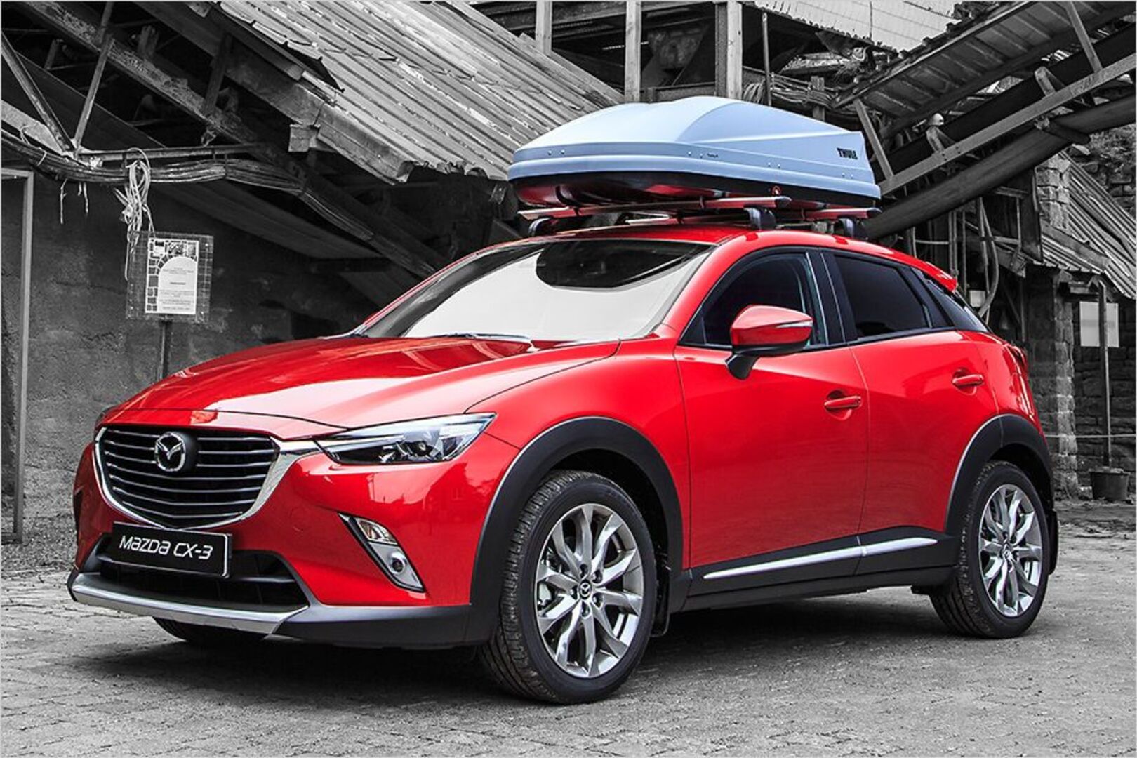 Ein schwarzer Dachheckspoiler kann ebenso bestellt werden wie ein silberfarbener Unterfahrschutz oder 18-Zöller mit markanten V-förmigen Speichen. Zudem sind individuelle Foliendesigns im Programm. Und um die praktischen Seiten des CX-3 zu verbessern, ist nun auch ein Lastenträger für Dachboxen oder ähnliche Transportsysteme orderbar.