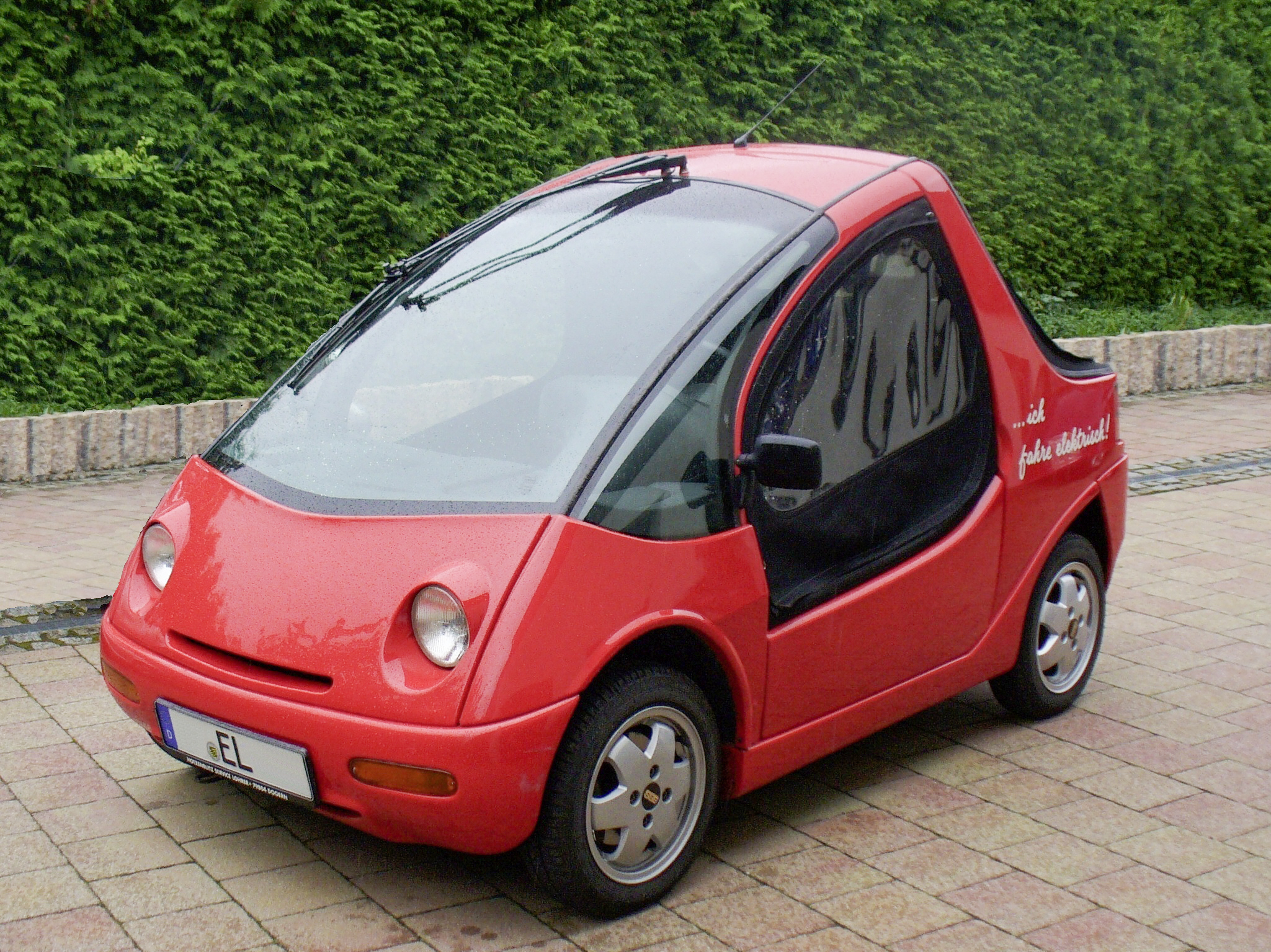993 kam dieses E-Mobil der deutschen Firma Hotzenblitz-Mobile GmbH in Deutschland auf den Markt. Das aus Kunststoffteilen gefertigte Mobil wog 830 Kilo und wurde von einem E-Motor mit 12 kW (16 PS) angetrieben. Der Akku mit 10 kWh Kapazität wog rund 350 Kilo, damit war eine Reichweite von rund 70 Kilometer möglich. 1996 wurde die Produktion eingestellt, heute genießt der Hotzenblitz Kultstatus.