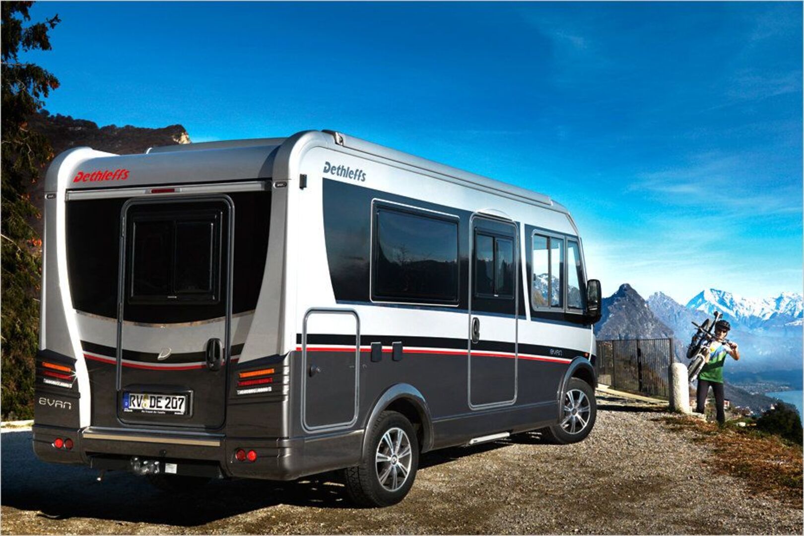 Ein kompaktes Reisemobil und ein Familienvan in einem - das soll der neue Dethleffs Evan sein. Unter der schicken Karosserie steckt das Fahrgestell des Fiat Ducato, vorangebracht wird das kleine Haus auf Rädern von Dieselmotoren zwischen 115 und 177 PS. Für Kurzreisen ins Grüne bietet der Evan gurtgesicherte Sitze und Schlafgelegenheiten für bis zu sechs Personen. Eine Küchenzeile inklusive Kühlschrank, eine zentrale Sitzgruppe und ein integriertes Bad mit Dusche machen die Reisenden unabhängig von teuren Hotels oder Schwiegermutters Wohnung. Die ab Werk montierte Diesel-Standheizung hält die gute Stube im Winter warm.