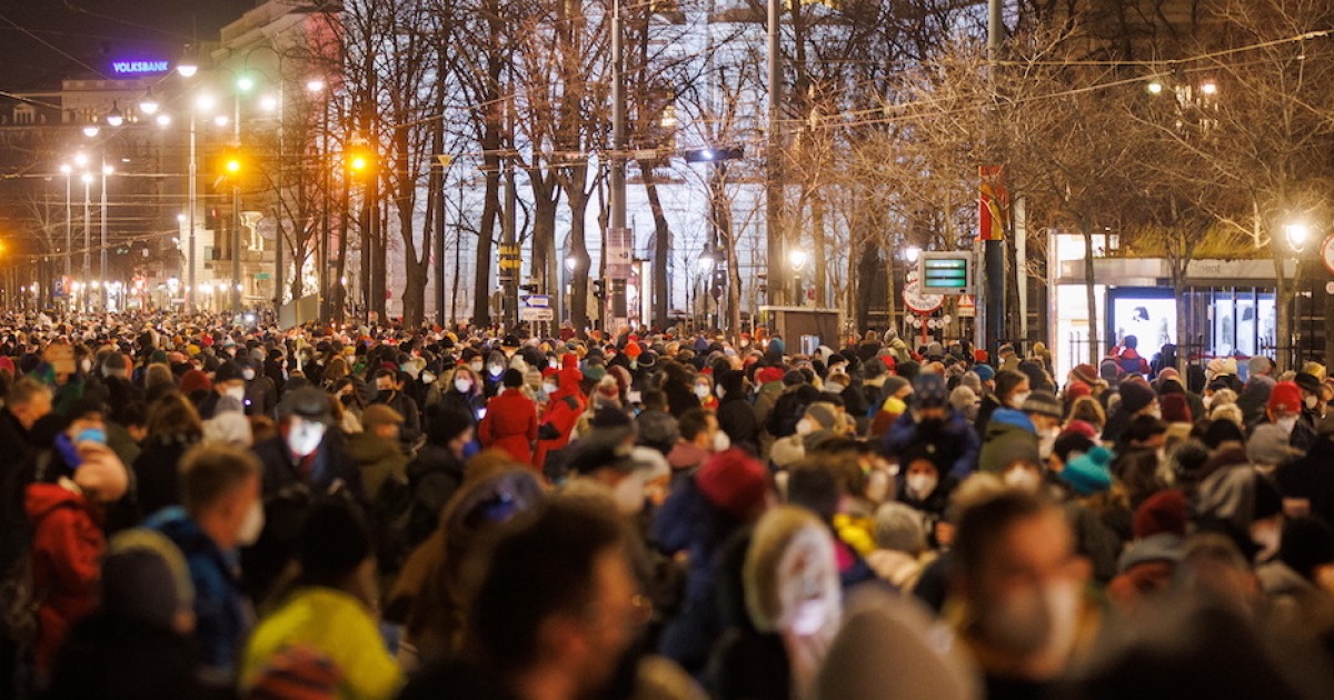 Tags zuvor war die Situation in Wien dagegen außer Kontrolle geraten. Die angekündigten Veranstaltungen von Gegnern der Coronamaßnahmen hatten als Kundgebungen begonnen, unter anderem hatte die Impfgegner-Partei MFG dazu aufgerufen. Etwa 2.000 Menschen waren zum Schwarzenbergplatz gekommen, bis sich Teilnehmer unangekündigt den Weg durch die Innenstadt bahnten. Auch Sperren wurden durchbrochen. Es gab sieben Festnahmen, über 100 Anzeigen und einen verletzten Polizisten.
