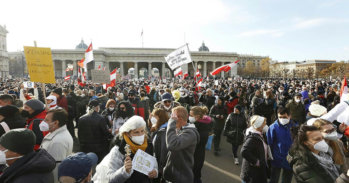 An der Großdemonstration gegen die Corona-Maßnahmen der Regierung und den kommenden Lockdown haben am Samstagnachmittag laut Polizei rund 35.000 Menschen teilgenommen, die FPÖ sprach gar von 100.000. Am Nachmittag zog ein Demozug über den Ring. Wie die APA aus Polizeikreisen erfuhr, soll in zumindest einem Fall versucht worden sein, einem Beamten die Schusswaffe aus dem Sicherheitsholster zu entreißen. Bis zum Nachmittag wurden mindestens zehn Menschen festgenommen.