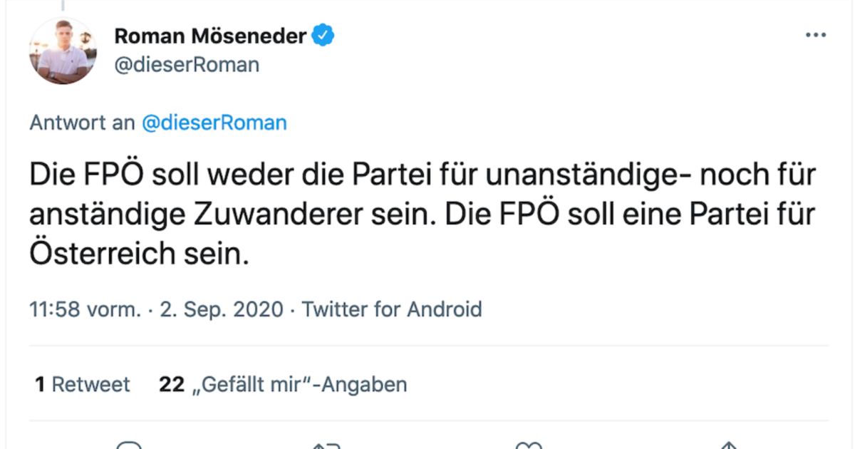 Als Vorstandsmitglied des Rings Freiheitlicher Jugend (RFJ) ist Mösender offzieller Funktionär der Freiheitlichen Partei. Der offene Schulterschluss mit den Identitären und ihrem Frontmann Martin Sellner gilt selbst in Teilen der Blauen als Tabu. In anderen Ländern hätte der gemeinsame Auftritt für einen Aufschrei der Empörung und unwiderstehbarem Druck zum Rücktritt gesorgt. Hierzulande wird er innerhalb der Partei nicht mal mit einem Schulterzucken quittiert.