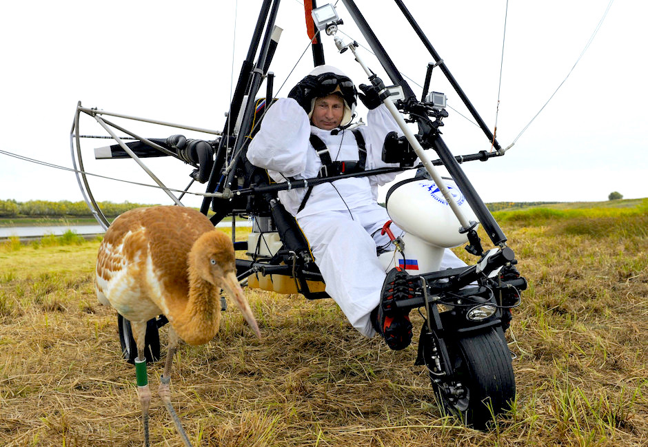 Sibirische Kraniche über arktische Landschaften in ihr Winterquartier begleiten, und zwar mit einem Hangglider: Das machen eigentlich nur Wissenschaftler zu Forschungszwecken. Und Wladimir Putin.