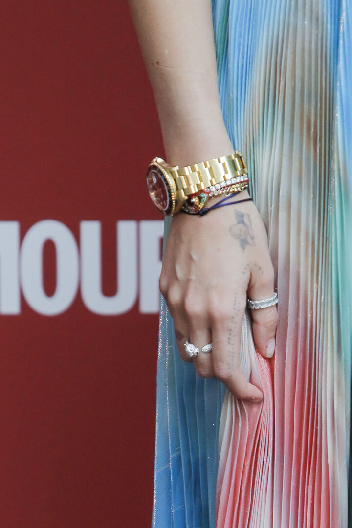 Die Sängerin hat ihren Beruf und gleichzeitig ihr Hobby auf dem Handgelenk verewigt: Eine kleine Musiknote. Die Musik hat ihr schon in vielen…