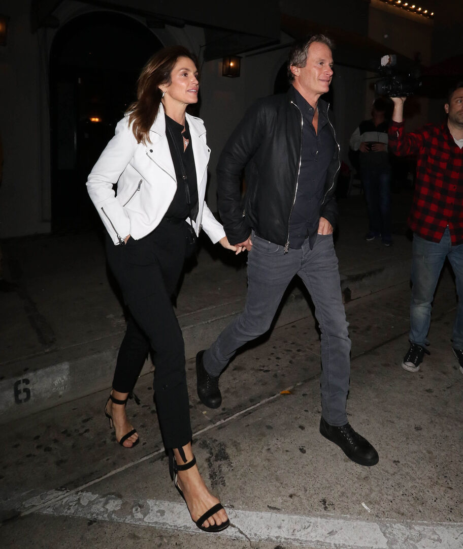 Für ihr Dinner-Date halten das Supermodel und ihr Ehemann das Outfit klassisch. Sie stylt eine weiße Bikerjacke zu…