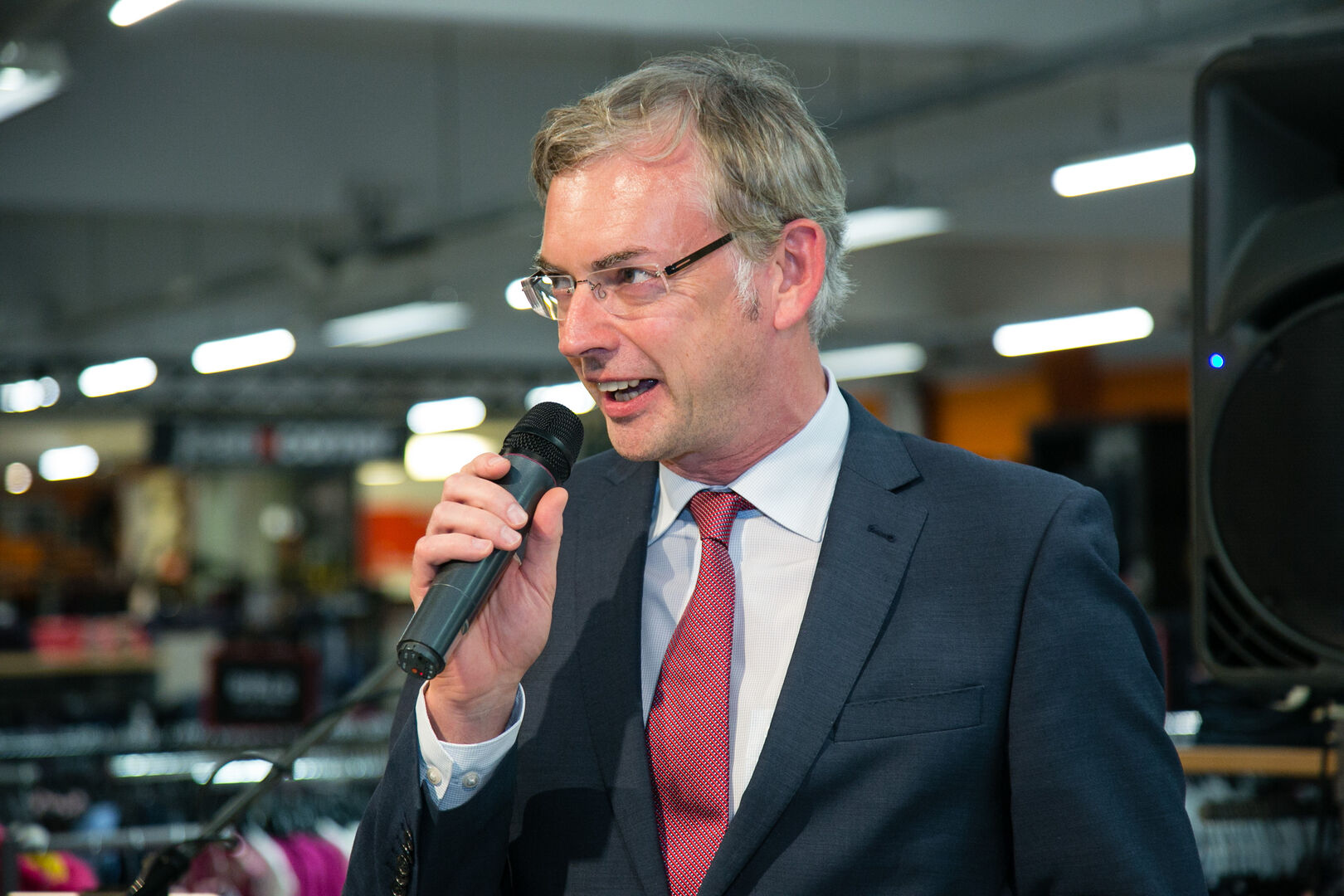 V. li.: Peter Koch (Geschäftsführer City Outlet Pasching), Paschings Bürgermeister Peter Mair, Landesrat Michael Strugl und Klaus Zimmer (Geschäftsführer City…