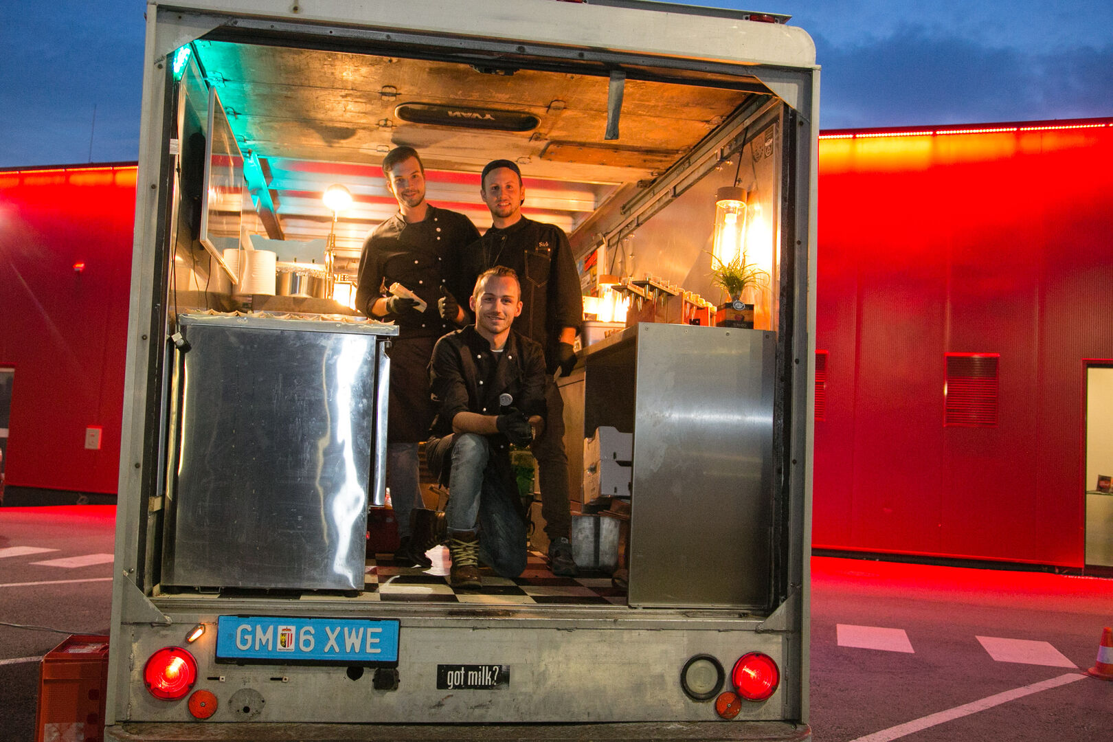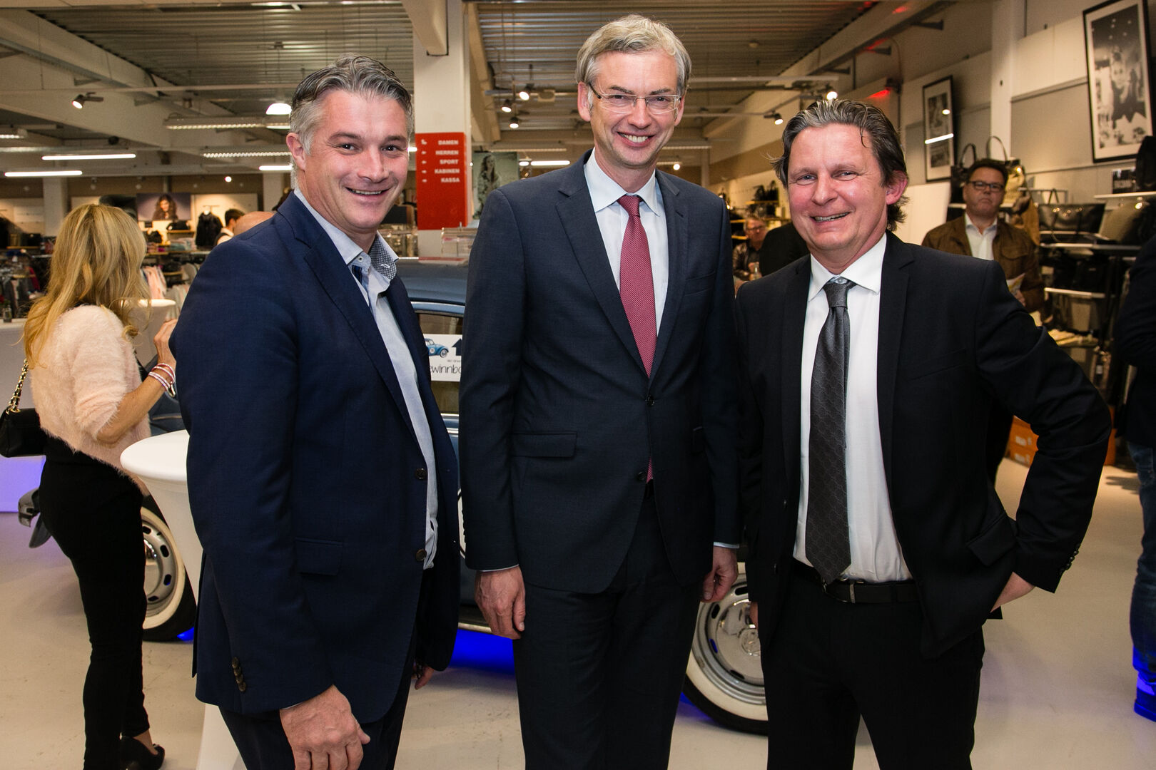 V. li.: Markus Windisch und Bernhard Walder (Post) mit Junior-Chef Dominic Zimmer.
