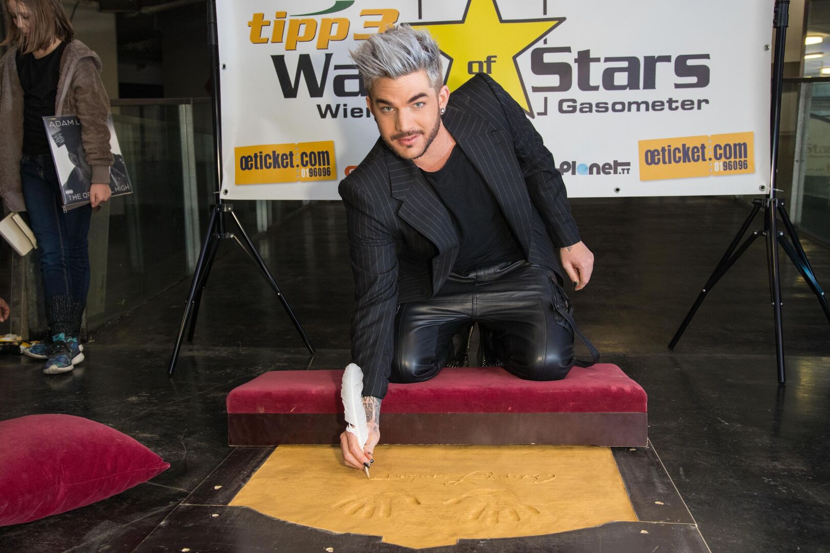 Adam Lambert unterschreibt und verewigt sich am Walk of Stars im Wiener Gasometer
