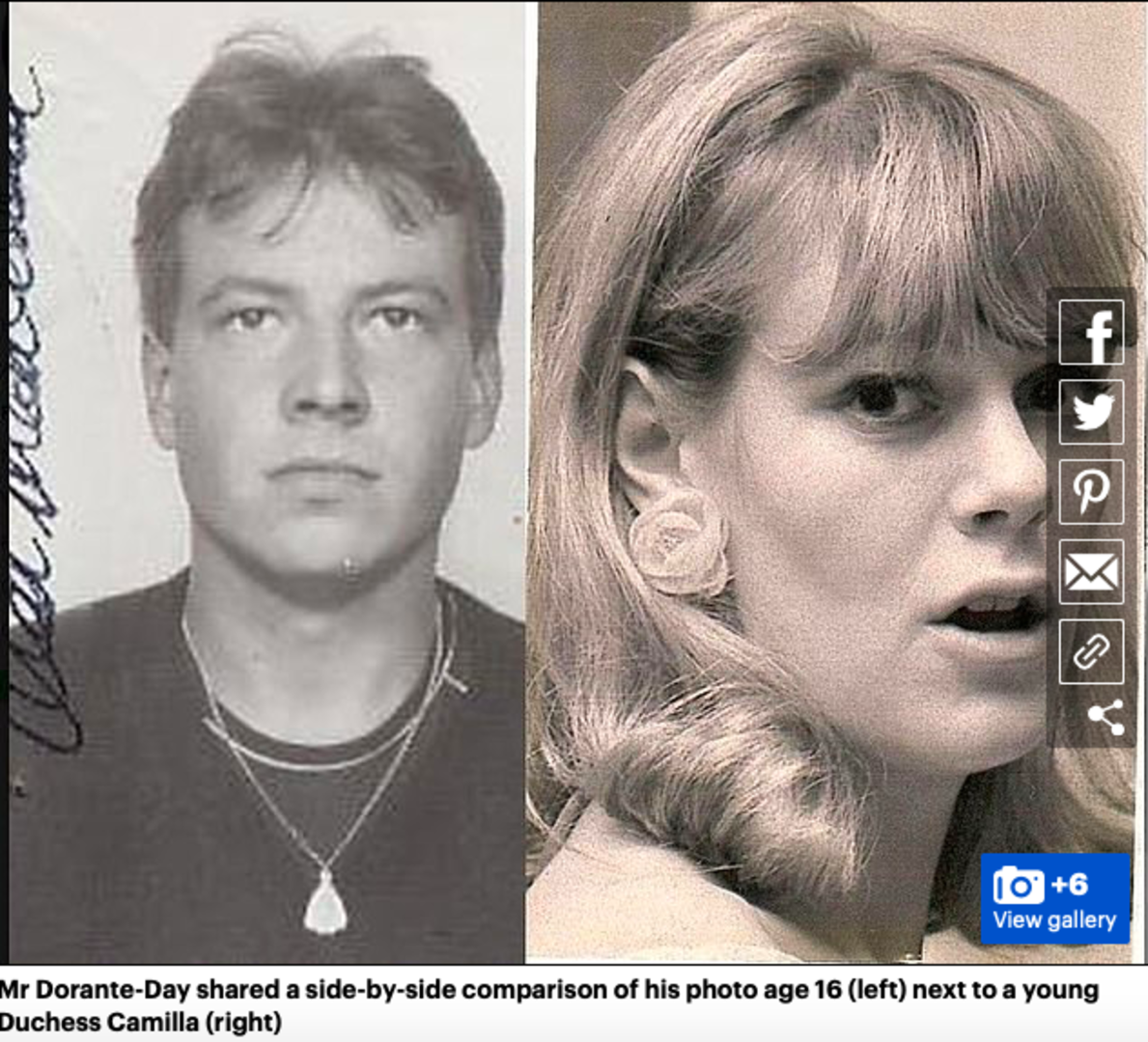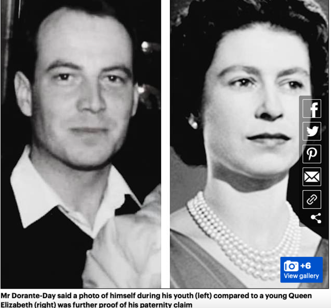 Auf seinem Facebook-Profil veröffentlichte Dorante-Day schon in den letzten Jahren immer wieder Fotos, mit denen er seine optische Ähnlichkeit mit den britischen Royals beweisen möchte. Auf neuen Bildern, die von der Tageszeitung Daily Mail veröffentlicht wurden, stellt er auch ältere Fotos von sich und Queen Elizabeth gegenüber, seiner angeblichen Großmutter.