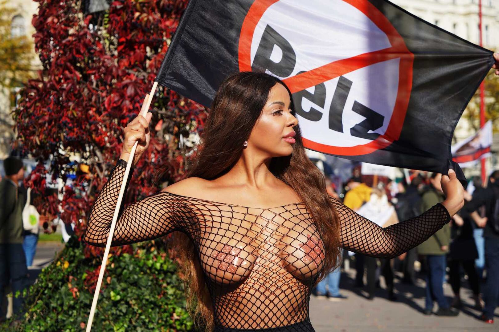 2020 hat sie sich für den Playboy ausgezogen, vor wenigen Tagen, um für Tierrechte zu demonstrieren. Bahati Venus hat sich der Protestaktion gegen Pelzverkauf des "Vereins gegen Tierfabriken" (VGT) am vergangenen Wochenende angeschlossen. Für Aufmerksamkeit hat sie allemal gesorgt: Mit Schildern und Fahnen posiert sie fast nackt für die Fotografen. Lediglich ein Slip, Sternchen-Pickerl und ein Ganzkörpernetz verdecken die intimsten Stellen ihres Körpers.