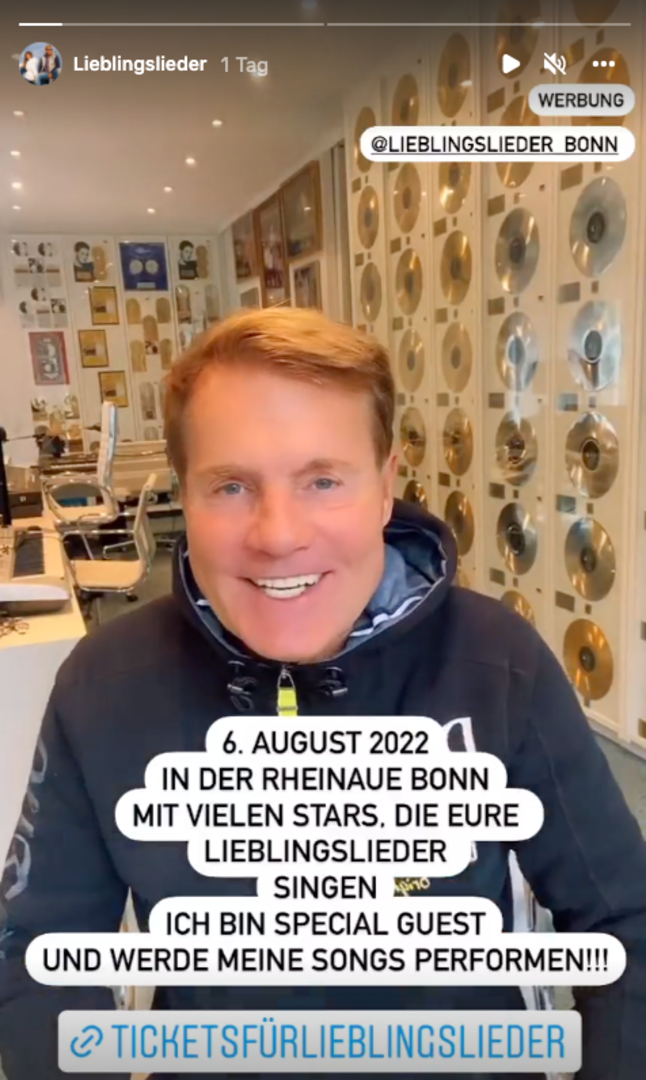 Obwohl die neue Staffel von „Deutschland sucht den Superstar“ ohne Dieter Bohlen stattfinden wird (wir berichteten), muss man nicht ganz auf seine Präsenz im Fernsehen verzichten. Denn wie der 67-Jährige nun auf Instagram verkündete, wird er im Sommer 2022 als Special Guest beim Musikfestival „Lieblingslieder“ auftreten. „Bald gibt's wieder richtig was auf die Ohren“, freut sich der Pop-Titan in seinem Posting. Bohlen wird aber nicht – wie in den letzten Jahrzehnten – den Juror geben, sondern selbst mit seinen größten Hits von „Modern Talking“ auftreten. Ob sein ehemaliger Bandkollege Thomas Anders auch dabei sein wird, weiß man nicht.