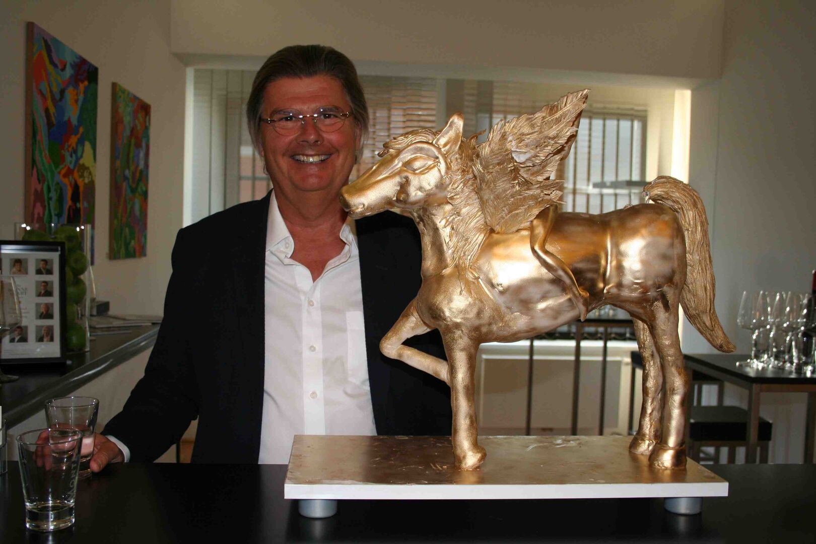 Kein Wunder also, dass diese außergewöhnliche Ausstellung standesgemäß gefeiert wurde. So servierte man Slow-Food Köstlichkeiten aus Südtirol und als süße Nachspeise ließ Aida-Boss Michael Prousek, ein Freund des Hauses, das Firmenlogo, einen goldenen Pegasus, als Riesentorte extra aus Wien anliefern.