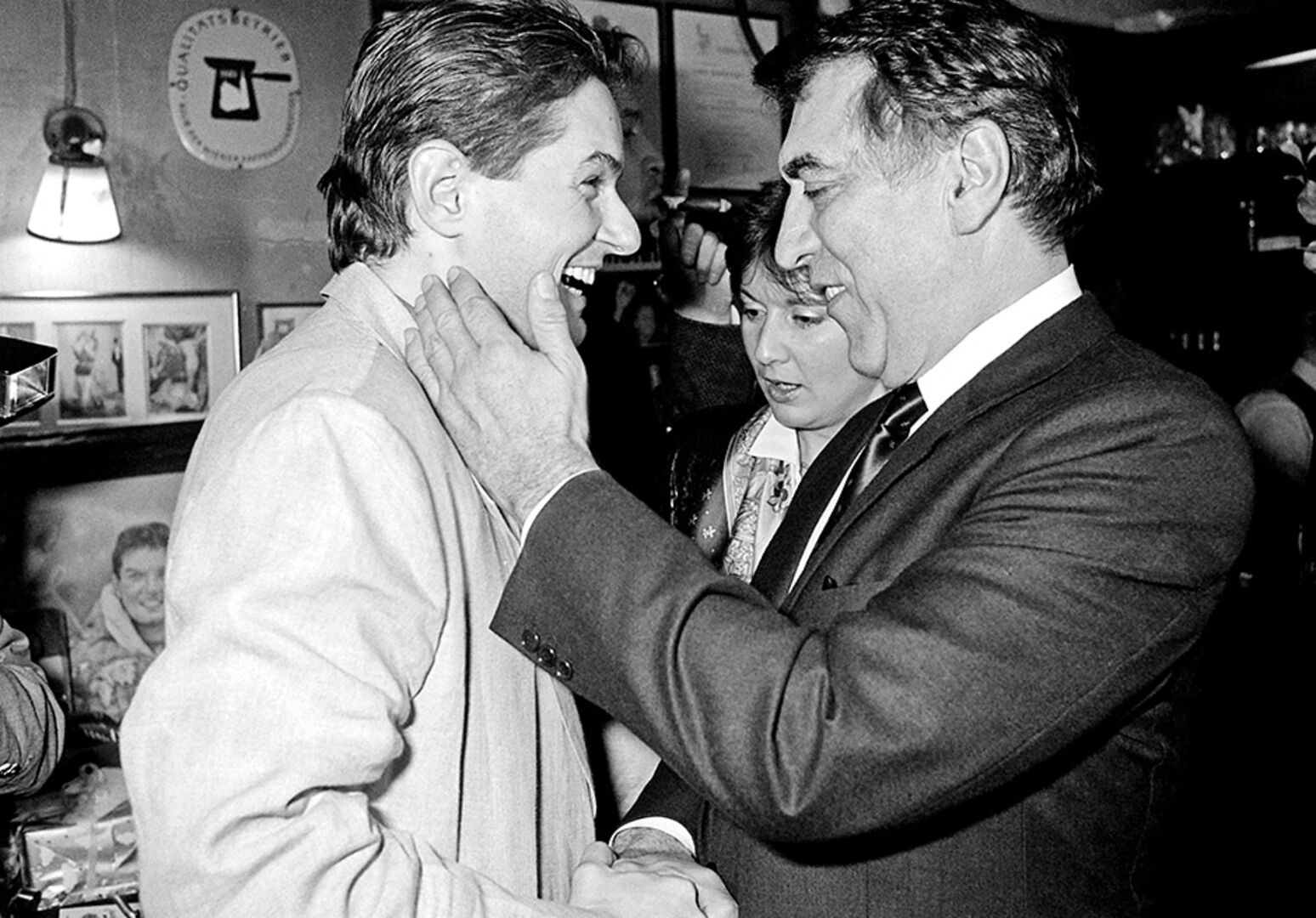 1987: Helmut Zilk gratuliert Hans Hölzl zum 30. Geburtstag im Cafe Hawelka.