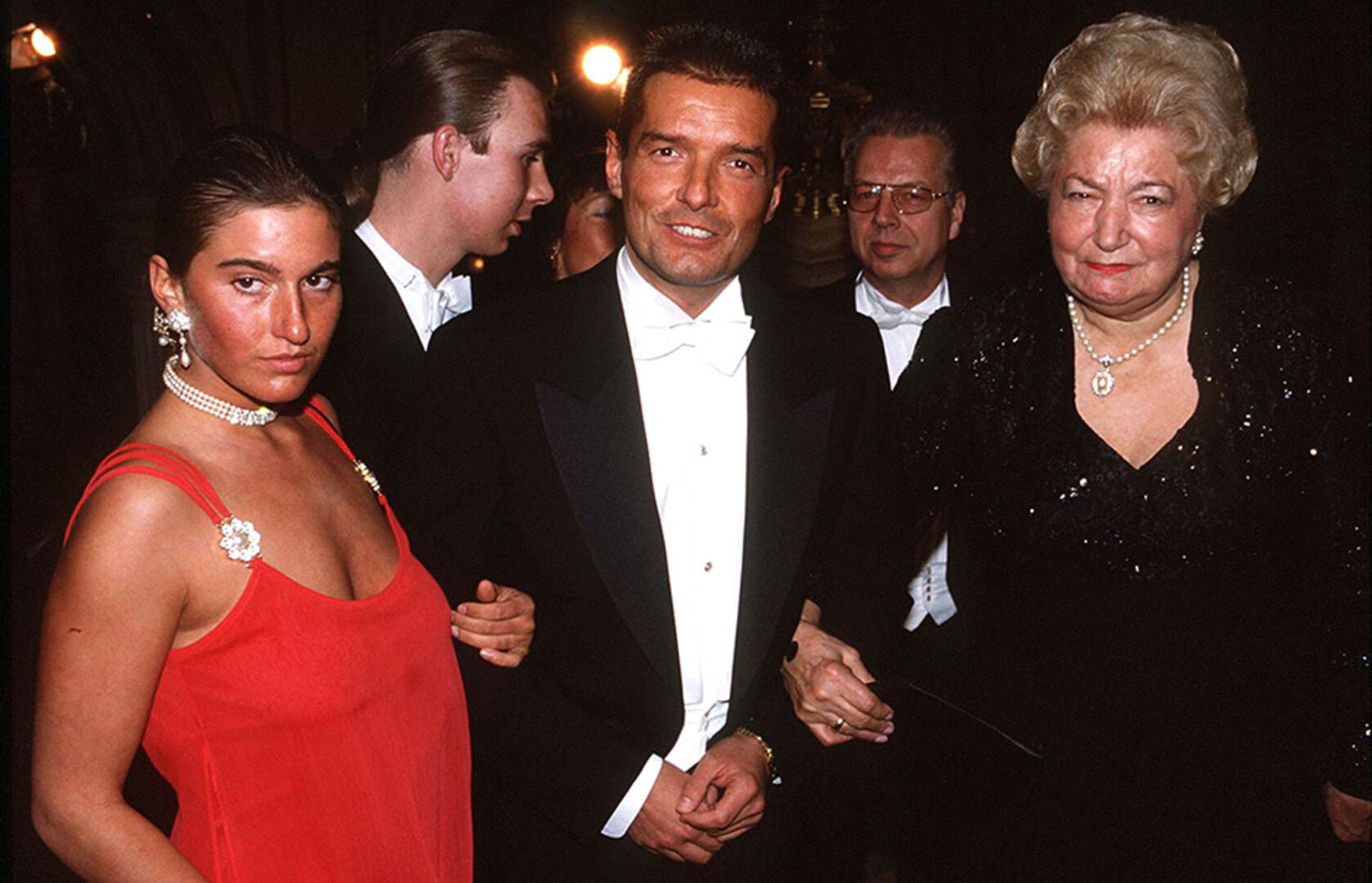 1987: Der Austro-Popstar besucht den Wiener Opernball mit seiner Stiefschwester Guggi, was er sichtlich genießt.