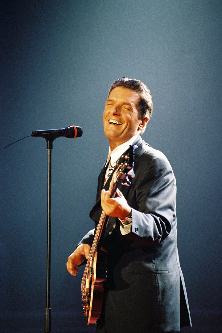 1993: Die Bühne war sein Leben und der Platz, an dem er seine Sorgen vergaß. Hier singt er auf der "Nachbar in Not"-Gala 1993.