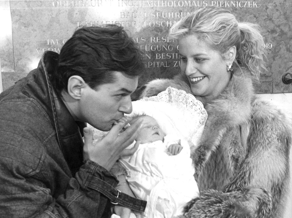 1986: Falco küsst sein nicht leibliches Töchterchen Katharina Vitkovic.