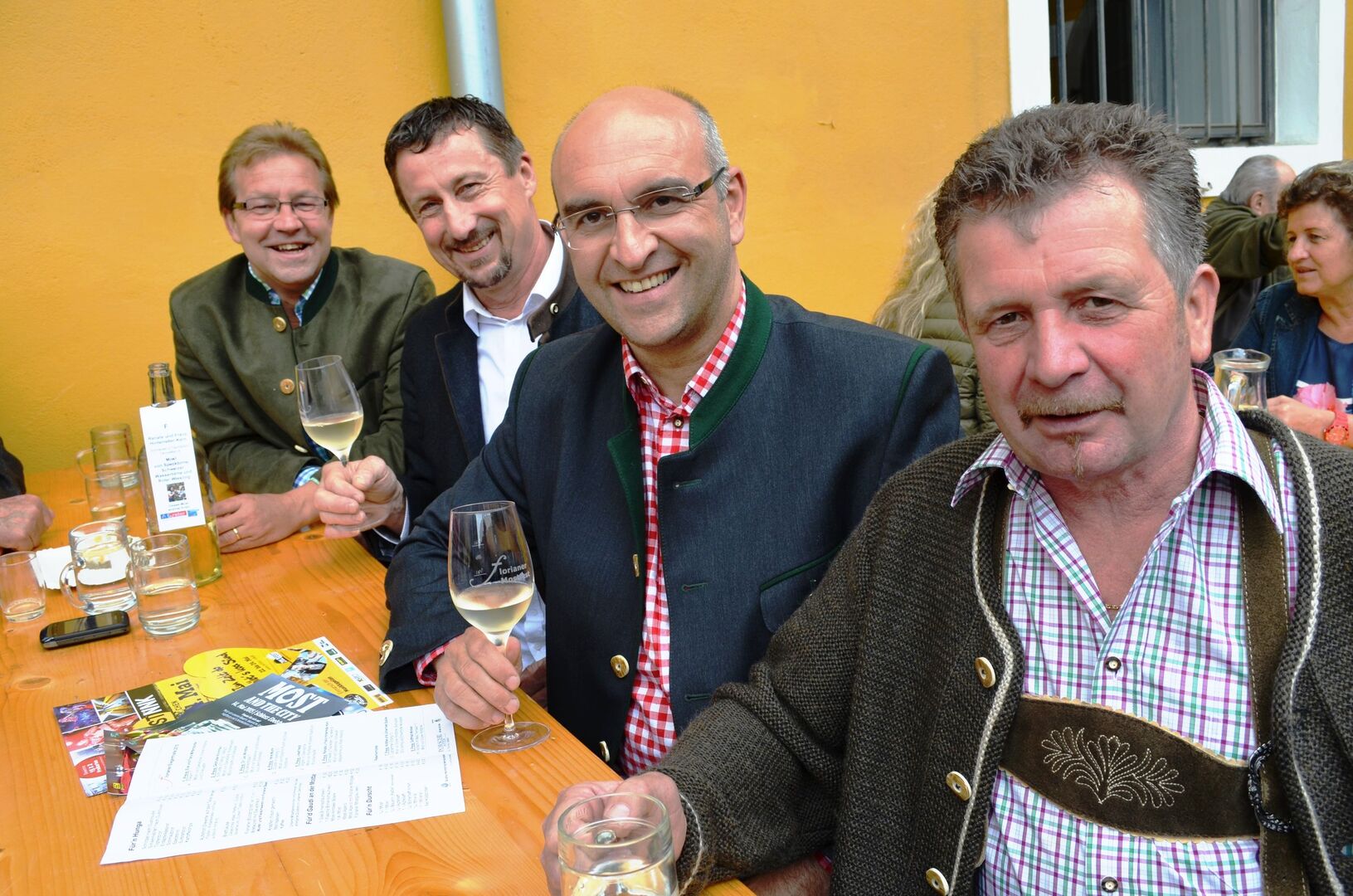 Die Sieger des Florianer Mostfestes (v.l.) 5. Platz: Josef Heibl, 6. Platz: Thomas Kirchmair, der Sieger und Mostbaron Franz Mitterndorfer, 4. Platz: Irene…
