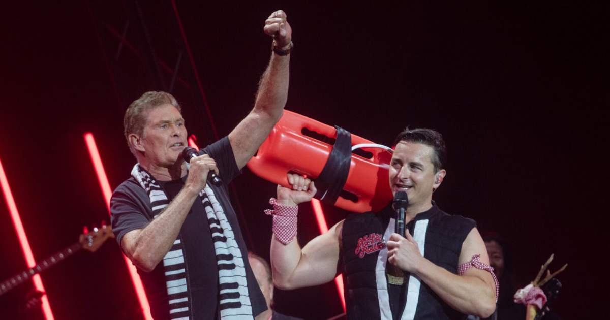 Damit hatten die Fans beim Konzert von Andreas Gabalier im Münchner Olympiastadion wohl nicht gerechnet: Denn plötzlich stand Baywatch-Legende David Hasselhoff auf der Bühne.