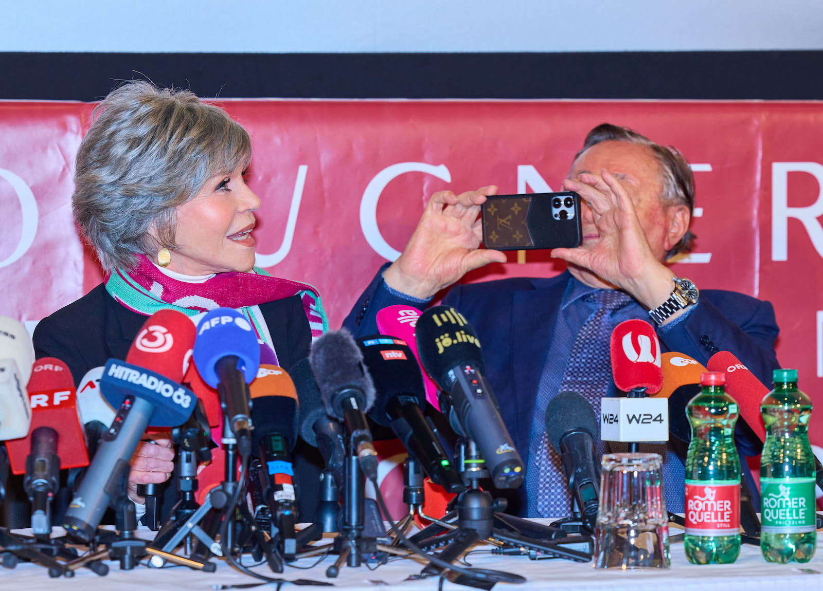 Auf die Frage, ob sie weiß wer Richard Lugner ist, antwortet Jane Fonda: "Er ist ein Mann nachdem eine Stadt benannt wurde. (Sie meint die Lugner City) Es gibt ein Buch über ihn, er muss erfolgreich sein." Nach ihrer Ankunft am Flughafen sei keine Zeit für ein Gespräch gewesen, sie sei einfach zu müde gewesen. Aber seit heute weiß sie: "Mr. Lugner ist netter, großzügiger und dankbarer Mann."