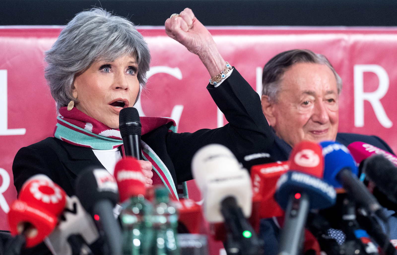 Auch auf ihre Rolle als Klima-Aktivistin wurde Fonda angesprochen. Sie verstehe zwar, dass es für Unmut sorge, wenn sich junge Leute auf die Straße kleben, doch ohne derartigen Aktionen würde ihr hier niemand eine Frage zu diesem Thema stellen. "Ich kann die Frustration der jungen Menschen verstehen. Wir müssen ihnen zuhören", sagte sie. Fonda kritisierte zudem, dass die OMV ein Sponsor der Staatsoper ist. "Es hat mir weh getan, das zu hören", sagte sie.