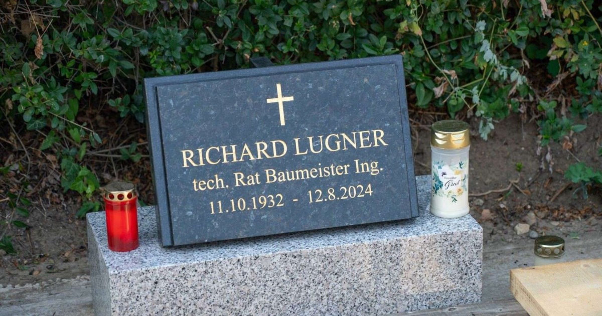 Gemeinsam mit Freunden, Bekannten und Mitarbeitern der Lugner-City ist Christina „Mausi“ Lugner mit Tochter Jacqueline, deren FPÖ-Ehemann Leo und Hund „Michi“ an Richards Grab gekommen. Zusammen haben sie mit kleinen Sektflaschen auf das verstorbene Familienoberhaupt angestoßen. Mit einem kräftigen „Gemma Lugner forever“ wurden rote und weiße Herz-Luftballons in den Himmel geschickt.