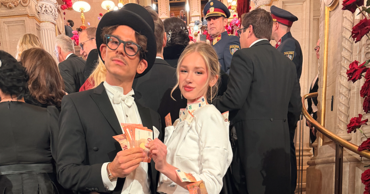 Glitzer, Glamour und prominente Gäste prägten den Wiener Opernball, doch zwischen Roben und Frack sorgte ein ungewöhnlicher Auftritt für Gesprächsstoff. Max Weißenböck erschien gemeinsam mit Joanna und setzte auf eine Inszenierung, die sich bewusst vom klassischen Ball-Look abhob. Joanna trug ein Kleid aus Socken, das mit 10-Euro-Scheinen gefüllt war und damit zahlreiche Blicke auf sich zog. Auch Max blieb dem Geld-Motto treu und präsentierte einen Zylinder, der ebenfalls mit Scheinen bestückt war. Im Laufe des Abends wurden Geldscheine verteilt und zugleich ihre Gamechangersocks beworben. Zwischen Blitzlicht und Walzerklängen entwickelte sich der Auftritt zu einer aufmerksamkeitsstarken Marketing-Aktion, die über den Ball hinaus für Diskussionen sorgte.