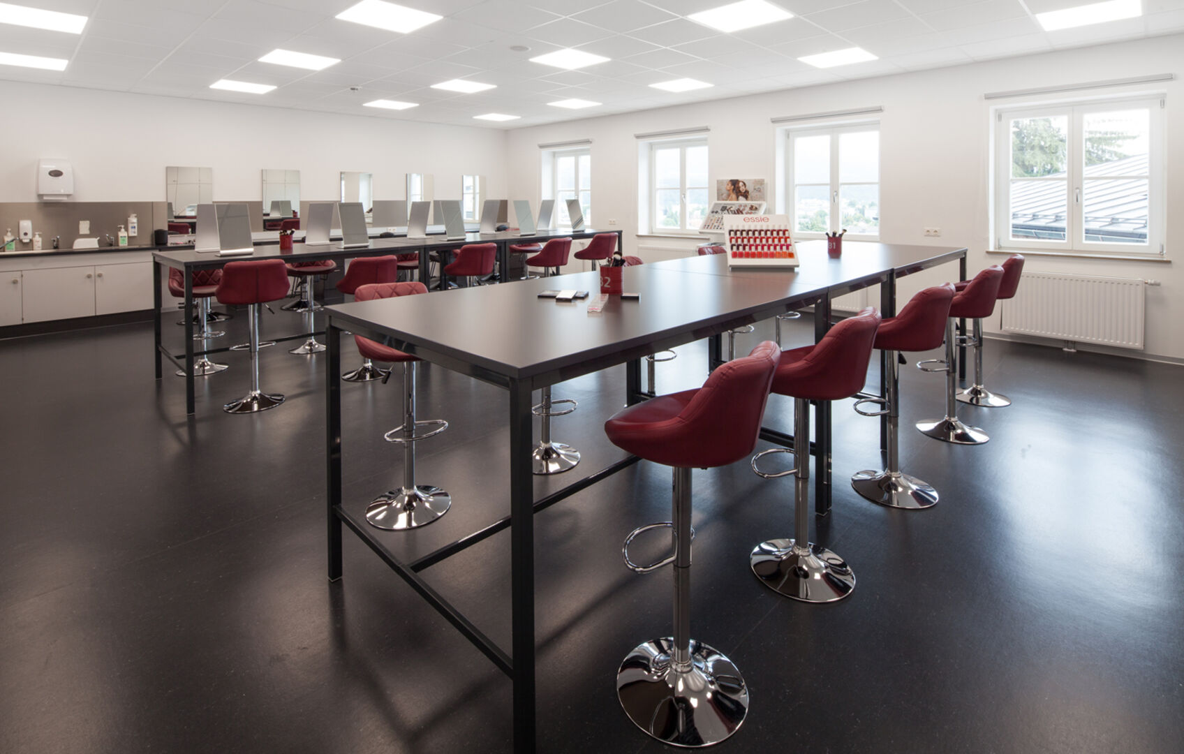 Erzbischof Franz Lackner und LR Heinrich Schellhorn lassen sich von Hairstyling-Lehrerin Anita Steger die Welt der Maniküre näherbringen (v. li.).