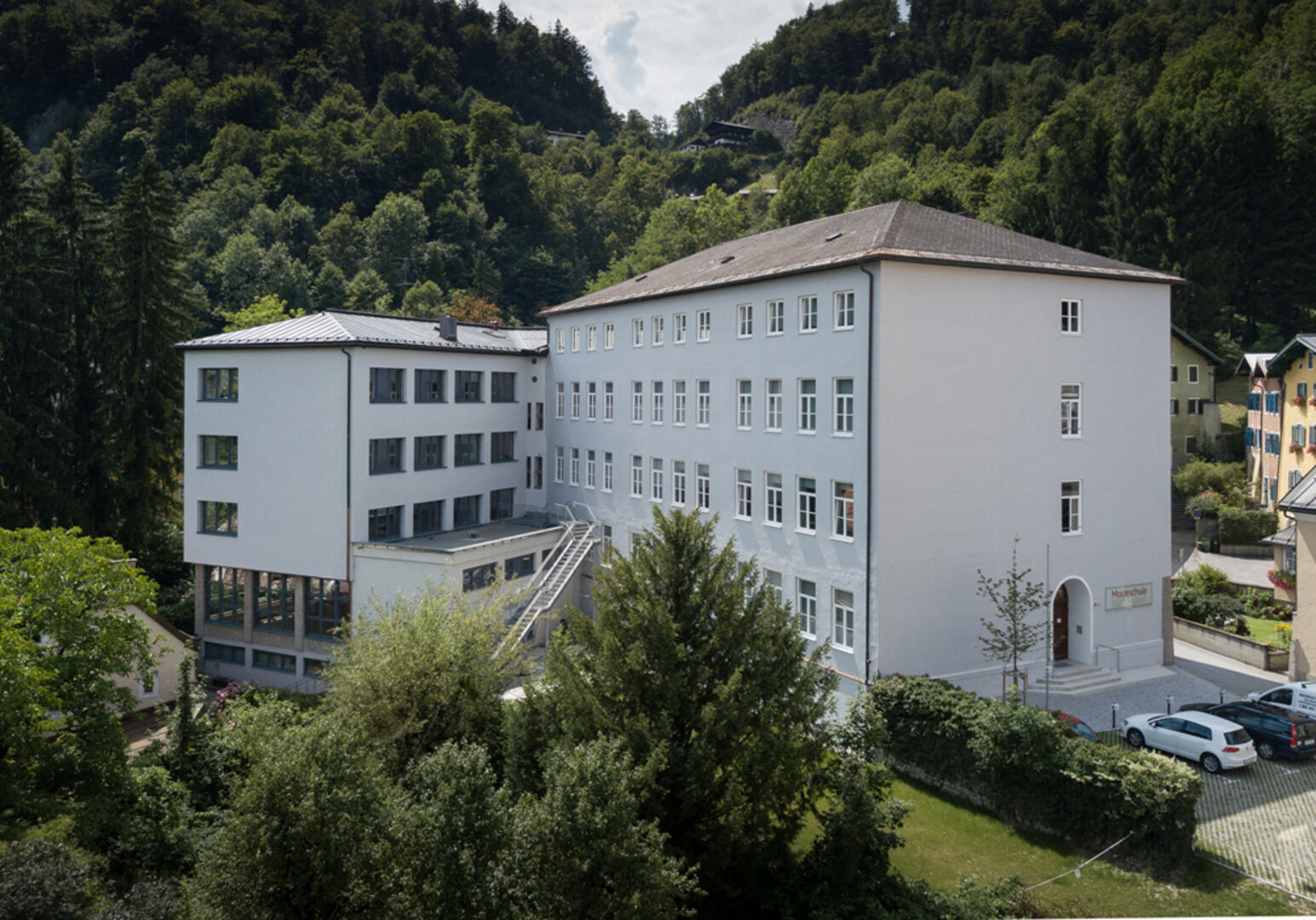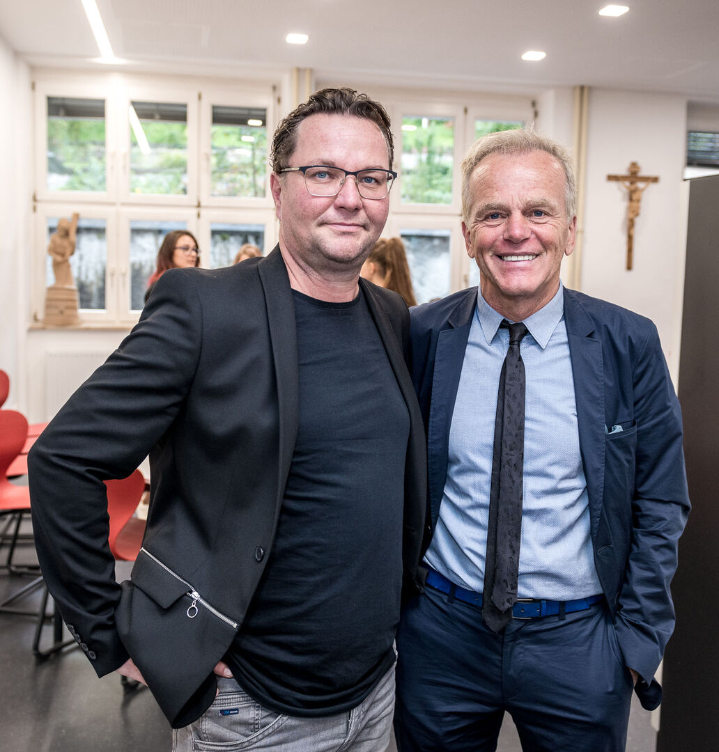 Finanzkammerdirektor Josef Lidicky und Geschäftsführer der Modeschule Hallein Michael Schober freuen sich über die gelungene Modernisierung der Schule (v. li.).