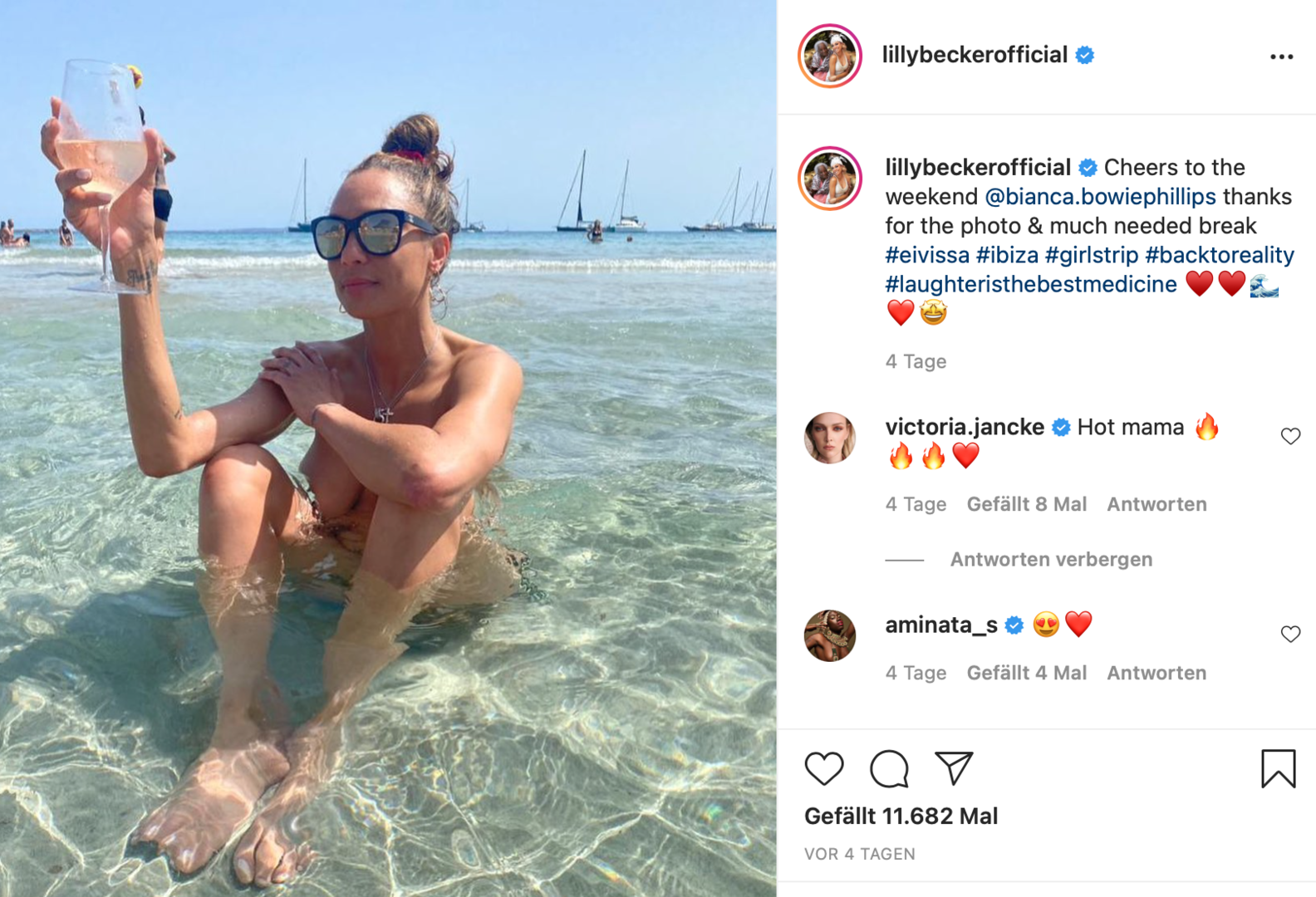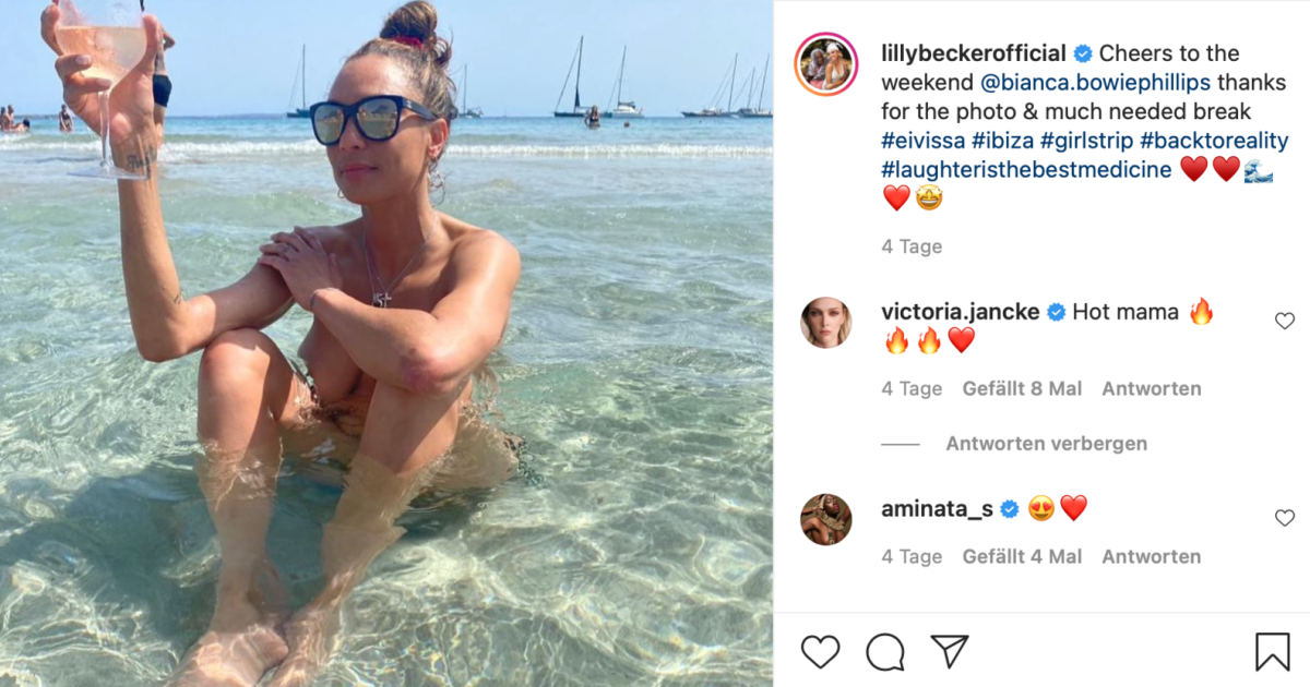 Erst kürzlich sorgte auch Lilly Becker mit einem Instagram-Posting für Aufruhr. Die Ex von Tennis-Legende Boris Becker lässt es sich gerade auf Ibiza so richtig gutgehen und genießt ein Abkühlung im Meer – und zwar vollkommen nackt. Die Kommentare unter dem Bild sind eindeutig: Mit ihrem durchtrainierten Körper begeistert Lily ihre Fans nach wie vor.