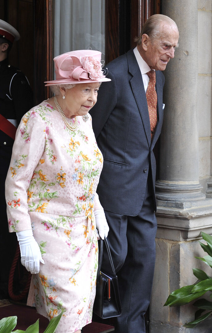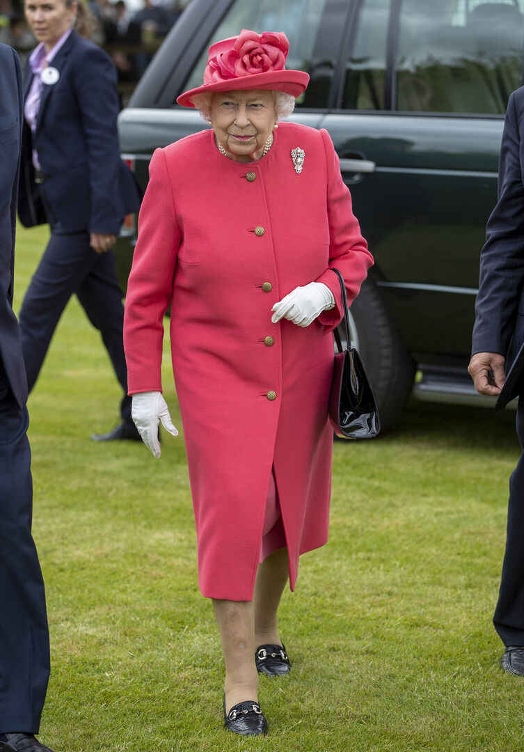 Zarte Pastelltöne schmeicheln dem hellen Hautton der Queen und wirken frisch. Im lachsfarbenen Kostüm mit auffallender Hutkreation begrüßt sie Royal-Fans und…