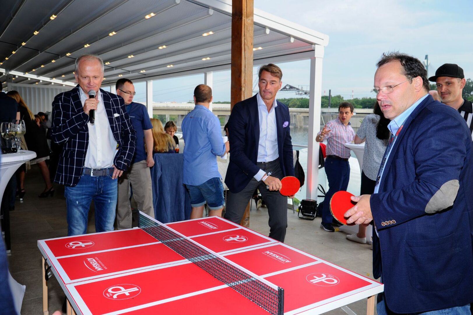 Andy Marek (Moderator und Rapid-Stadionsprecher), Oliver Attensam (Geschäftsführer Unternehmensgruppe) und Peter Schrattenholzer (Geschäftsführer Attensam Wien…