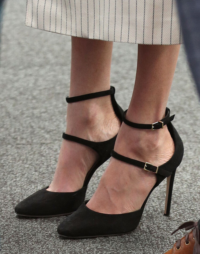 Auch die Royals sind vor Hallux Valgus nicht gefeit. Obwohl Herzogin Meghan ihre Schuhe extra immer eine Nummer zu groß trägt, um Blasen zu vermeiden, hat das jahrelange Tragen von High Heels auch bei ihr Schäden hinterlassen. Nun, da sie schwanger ist, sieht man die Herzogin öfter mal in bequemen Sandalen – gut so.
