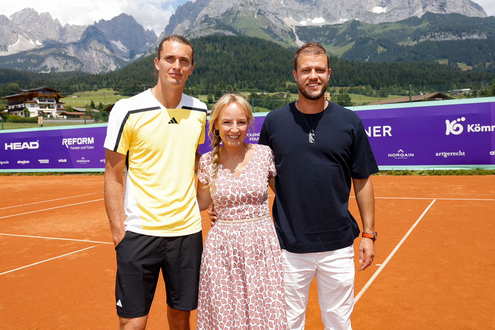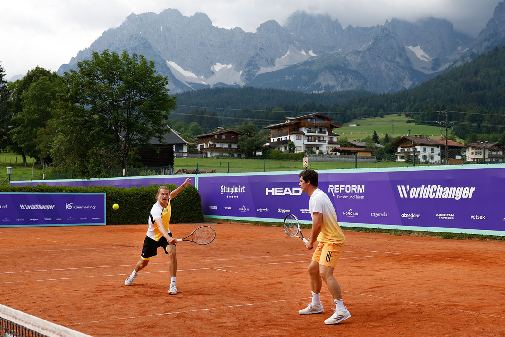 Der Turniertag begann mit einer herzlichen Begrüßung durch WorldChanger-Gründer Robert Laner, Tennisstar Alexander Zverev und Stanglwirt-Junior-Chefin Maria Hauser. Um die Teilnehmer ordentlich in Stimmung zu bringen, hat niemand Geringeres als Fitness-Influencer-Ikone Pamela Reif fürs gebührende Warm-up zum WorldChanger Playground Charity Tennisturnier gesorgt. Beim anschließenden Show-Match stellten Alexander Zverev und sein Bruder Mischa im Doppel gegen die Brian-Brüder ihre Tenniskünste unter Beweis. Nach dem Tennisturnier wurde auf dem Center Court vor der beeindruckenden Kulisse des Wilden Kaisers ein Scheck über 100.000 Euro an die Alexander Zverev Stiftung übergeben.