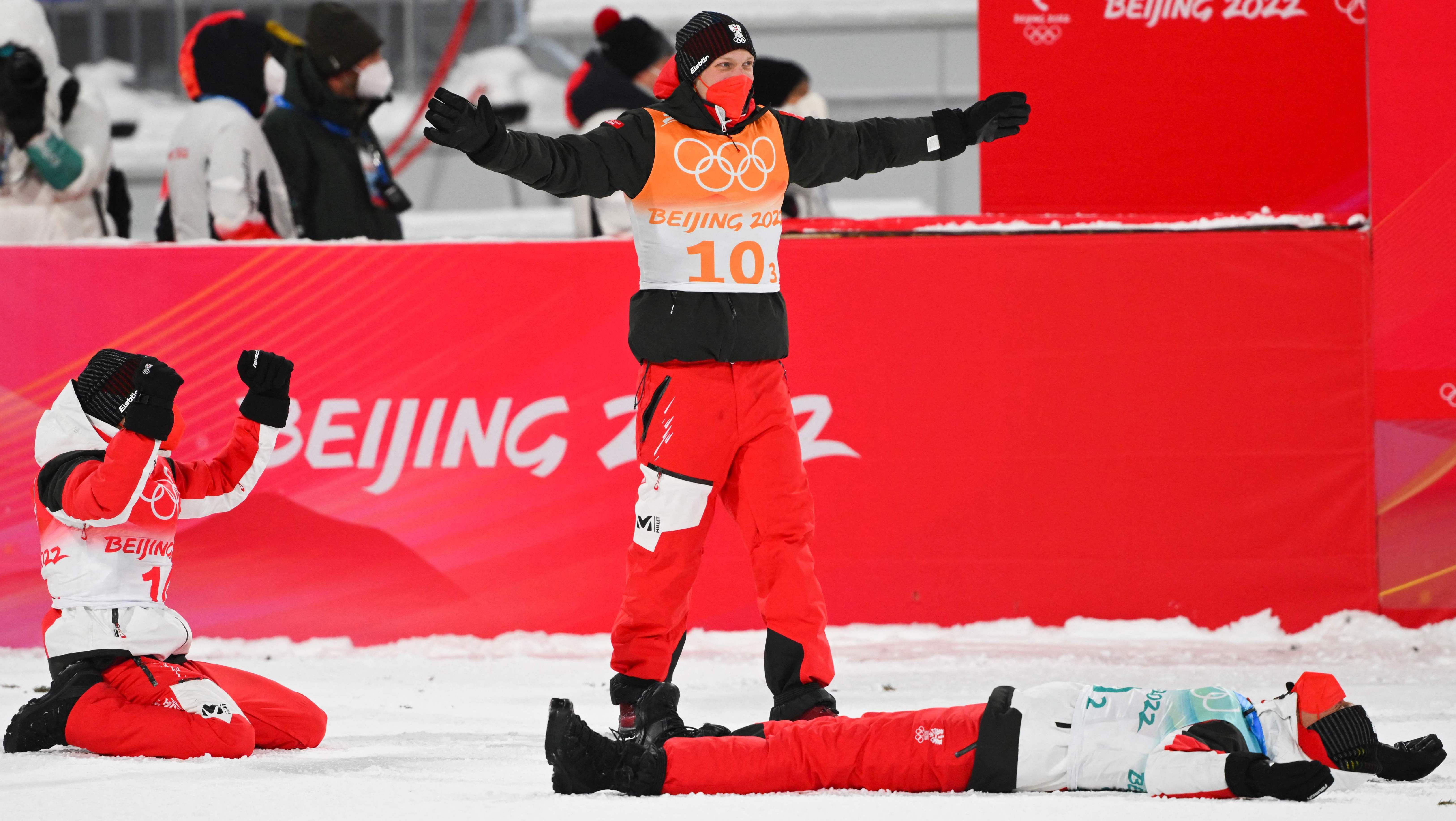 8,3 Punkte betrug am Ende der Vorsprung auf die zweitplatzierten Slowenen, mit Respektabstand folgt Deutschland auf Rang drei - hauchdünn vor Norwegen. Es ist der erste Olympiasieg für die ÖSV-Adler im Teamspringen seit Vancouver 2010! Stefan Kraft katapultierte Österreich mit einem starken Sprung bei ungünstigen Verhältnissen vom Kampf um Bronze in das Rennen um Gold; Daniel Huber und Jan Hörl kämpften sich an den führenden Slowenen vorbei. Und Schluss-Springer Manuel Fettner brachte den Triumph über die sprichwörtliche Ziellinie.